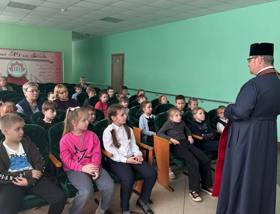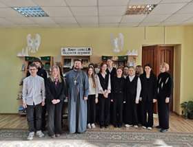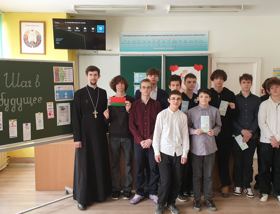 13 февраля клирик прихода храма Собора Белорусских святых — Архиерейского подворья г. Гродно иерей Александр Дьяченко провел встречу с учащимися шестых классов средней школы №38 имени Кирилла Туровского г. Гродно.