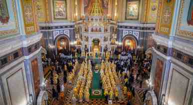 В семнадцатую годовщину интронизации Святейшего Патриарха Кирилла в Храме Христа Спасителя совершена Божественная литургия