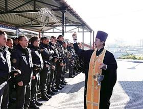 Настоятель прихода храма Рождества Христова города Гродно протоиерей Евгений Павельчук принял участие в строевом смотре Октябрьского отдела (г. Гродно) Департамента охраны МВД РБ в связи с переходом на зимнюю форму одежды.
