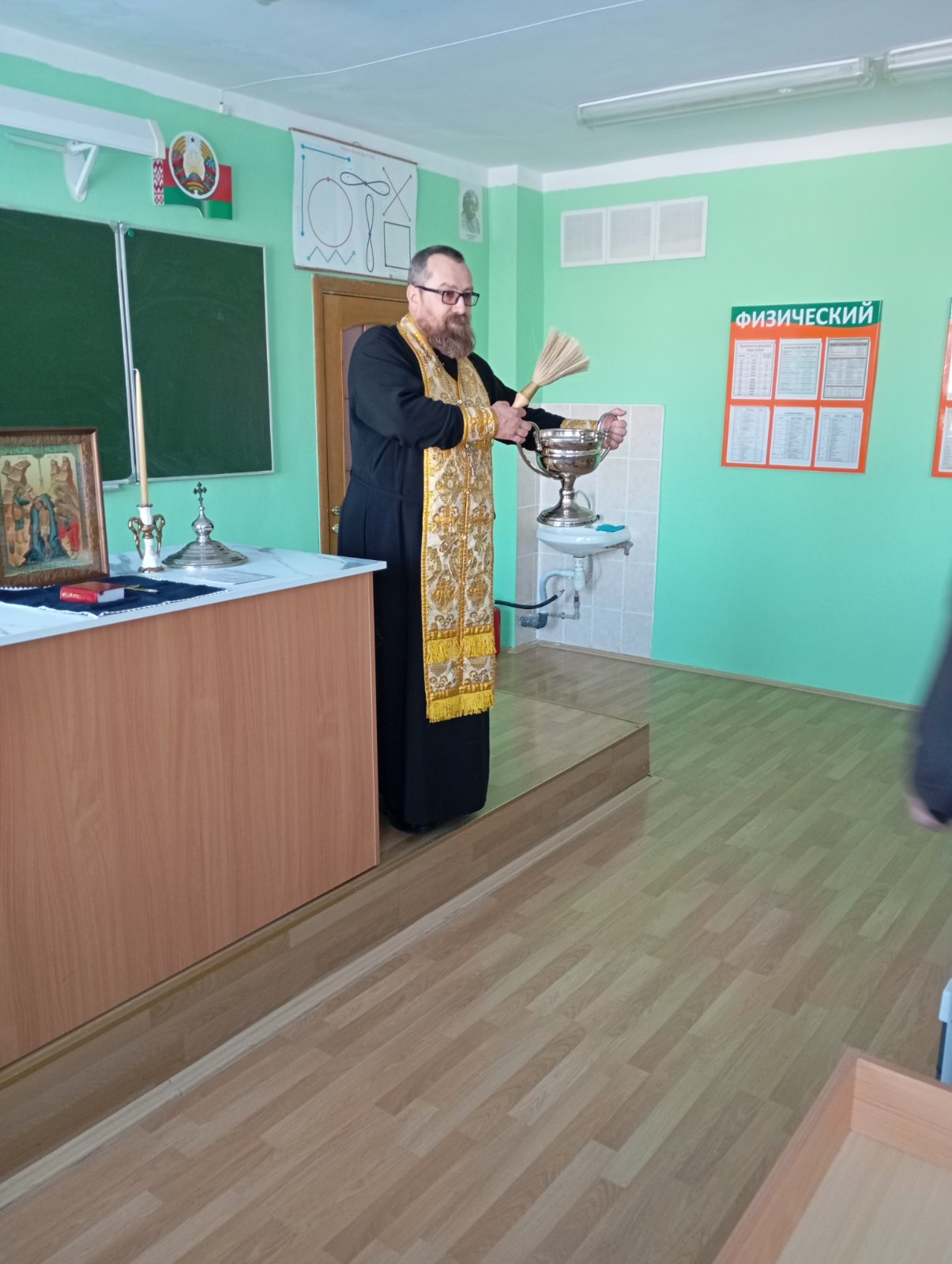 20 января по благословению благочинного Щучинского церковного округа иерея Александра Пастерняка иерей Димитрий Голамбовский посетил среднюю школу №2 г. Щучина имени В. Я. Первушина.