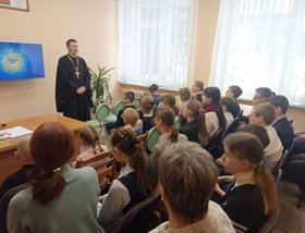 23 декабря клирик прихода храма Собора Белорусских святых — Архиерейского подворья иерей Александр Дьяченко встретился с шестиклассниками средней школы №38 имени Кирилла Туровского г. Гродно.