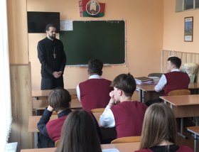 17 декабря клирик прихода святого преподобномученика Серафима Жировичского г. Гродно протоиерей Михаил Велисейчик провел беседы с учащимися 8–9-х классов средней школы №40 имени В. И. Кремко г. Гродно.