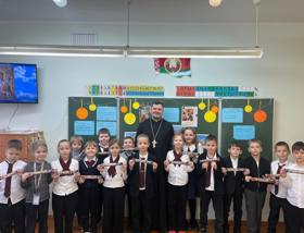 19 декабря клирик прихода храма Собора Белорусских святых — Архиерейского подворья иерей Александр Дьяченко встретился с учениками 2 «В» средней школы № 38 имени Кирилла Туровского г. Гродно.