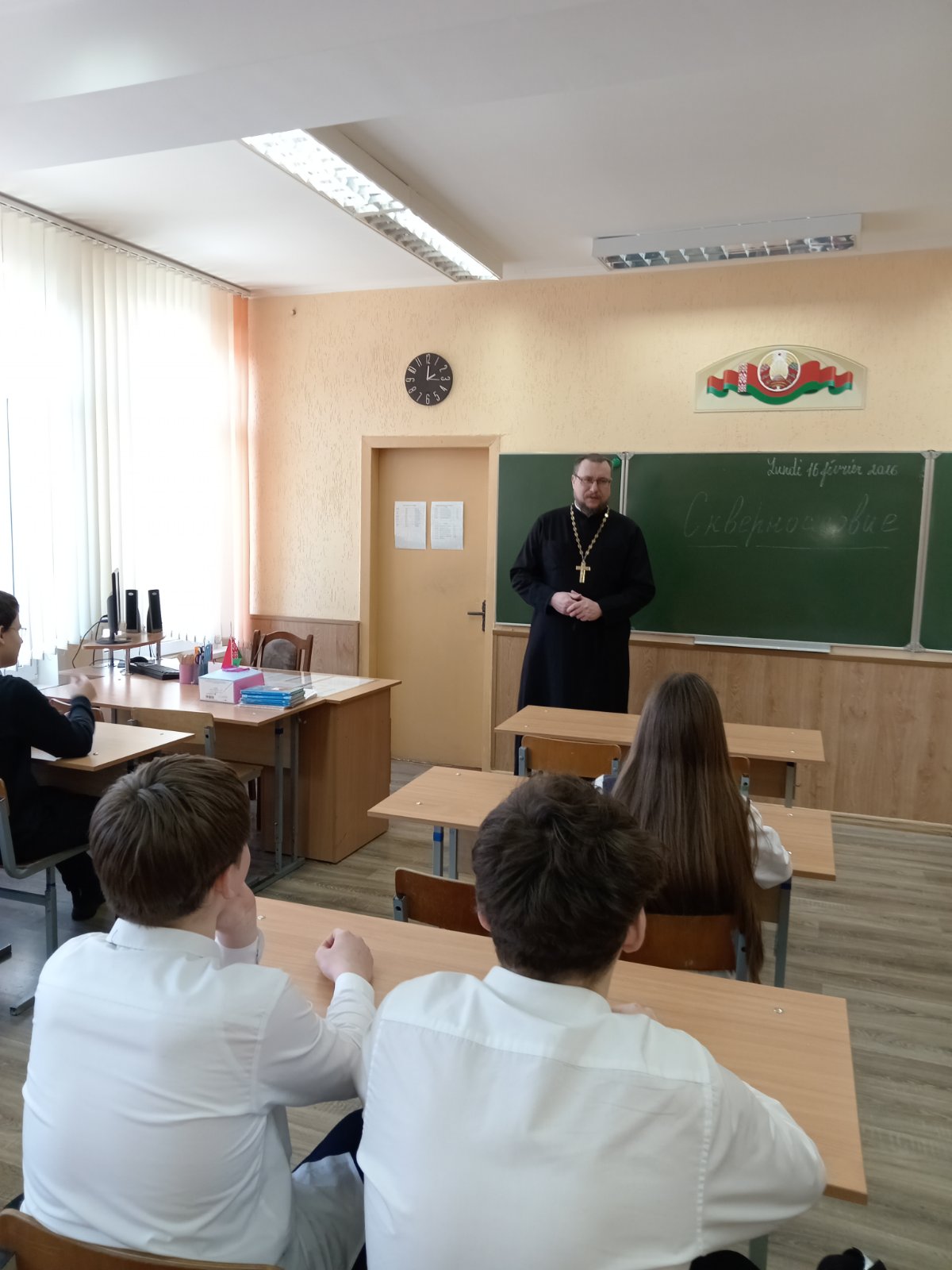 Главная / 18 февраля настоятель прихода храма преподобномученика Серафима Жировичского г. Гродно протоиерей Иоанн Велисейчик посетил государственное учреждение образования «Средняя школа №40 имени В. И. Кремко г. Гродно».