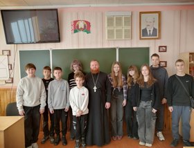 1 ноября клирик кафедрального собора святых апостолов Петра и Павла г. Волковыска иерей Антоний Федосеев провел беседу с учащимися 7 класса гимназии №2 г. Волковыска на тему основ христианской нравственности.