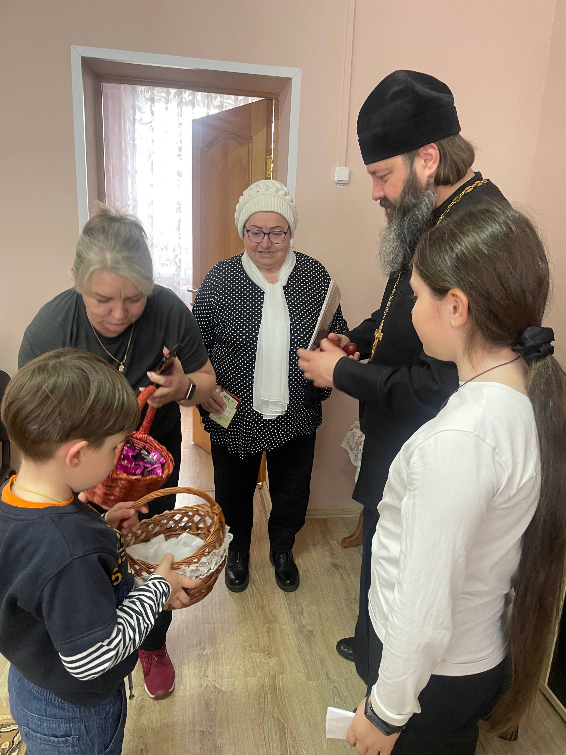 В рамках благотворительной акции, приуроченной к Светлому Христову Воскресению, 13 апреля клирики прихода храма иконы Божией Матери «Взыскание погибших» г. Гродно протоиерей Валерий Боричевский и иерей Георгий Панфилов посетили отделение дневного пребывания для граждан с инвалидностью государственного учреждения «Центр социального обслуживания населения Октябрьского района г. Гродно».