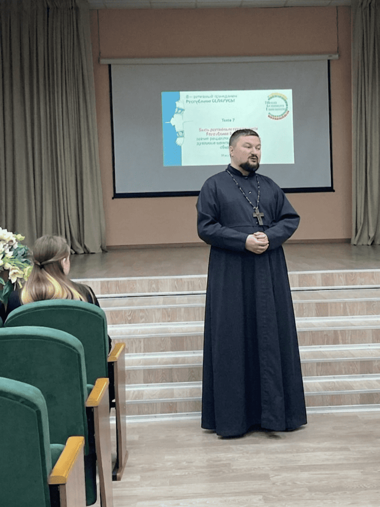 31 марта настоятель прихода храма преподобной Евфросинии Полоцкой аг. Пограничный Берестовицкого района протоиерей Сергий Шелест принял участие в проведении занятия информационно-воспитательного проекта «ШАГ – Школа Активного Гражданина» с учащимися 8–11 классов местной школы.
