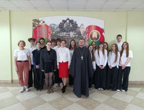 31 марта клирик прихода храма преподобномученика Серафима, архимандрита Жировичского, г. Гродно протоиерей Михаил Велисейчик посетил государственное учреждение образования «Средняя школа №40 имени В.И. Кремко г. Гродно» в рамках республиканского проекта «ШАГ».