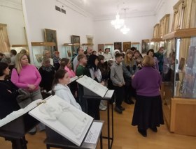 Воспитанники воскресной школы кафедрального собора вместе с родителями и педагогами посетили выставку икон «Небесные покровители»