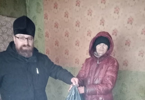 Прихожане, в рамках проведения епархиальной акции "Рождество приходит к каждому" и республиканской акции "От всей души" собрали продуктовые наборы, которые вручил иерей Олег.