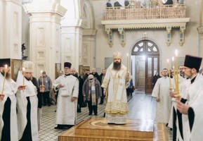 Богослужебные песнопения исполнил архиерейский хор под управлением Юлии Шепелевой.