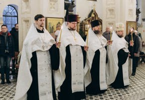 Его Высокопреосвященству сослужили: Секретарь Гродненской епархии протоиерей Николай Лабынько, настоятель Покровского кафедрального собора протоиерей Григорий Беляцкий, митрофорный протоиерей Александр Ноздрин и клирики кафедрального собора.