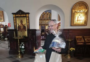 В конце встречи воспитанники и педагоги подарили Пасхальные куличи и открытки, сделанные своими руками, для всех служителей храма.