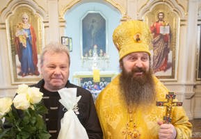 После окончания Божественной литургии правящий архиерей обратился к верующим с архипастырским словом и поздравил именинников, вручив просфоры и цветы.