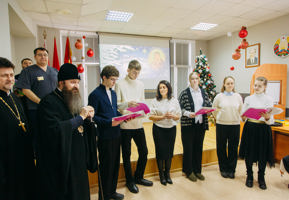 Его Высокопреосвященство сопровождали: протоиерей Николай Лабынько, Секретарь Гродненской епархии, настоятель прихода храма святого благоверного князя Александра Невского г. Гродно; протоиерей Евгений Павельчук, ответственный за окормление Гродненской областной детской клинической больницы, настоятель прихода храма Рождества Христова г. Гродно; иерей Александр Гук, руководитель отдела социального служения и церковной благотворительности Гродненской епархии, клирик кафедрального собора Покрова Пресвятой Богородицы г. Гродно.