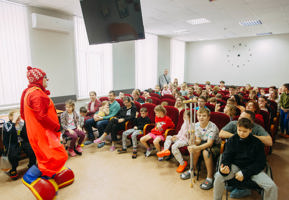 В начале встречи, посвященной празднику Рождества Христова, ее участникам была представлена развлекательная программа, подготовленная аниматорами — профессиональным больничным клоуном и его помощниками. Волонтеры подготовили для зрителей танцы, веселую музыку, интерактивы и шутки.