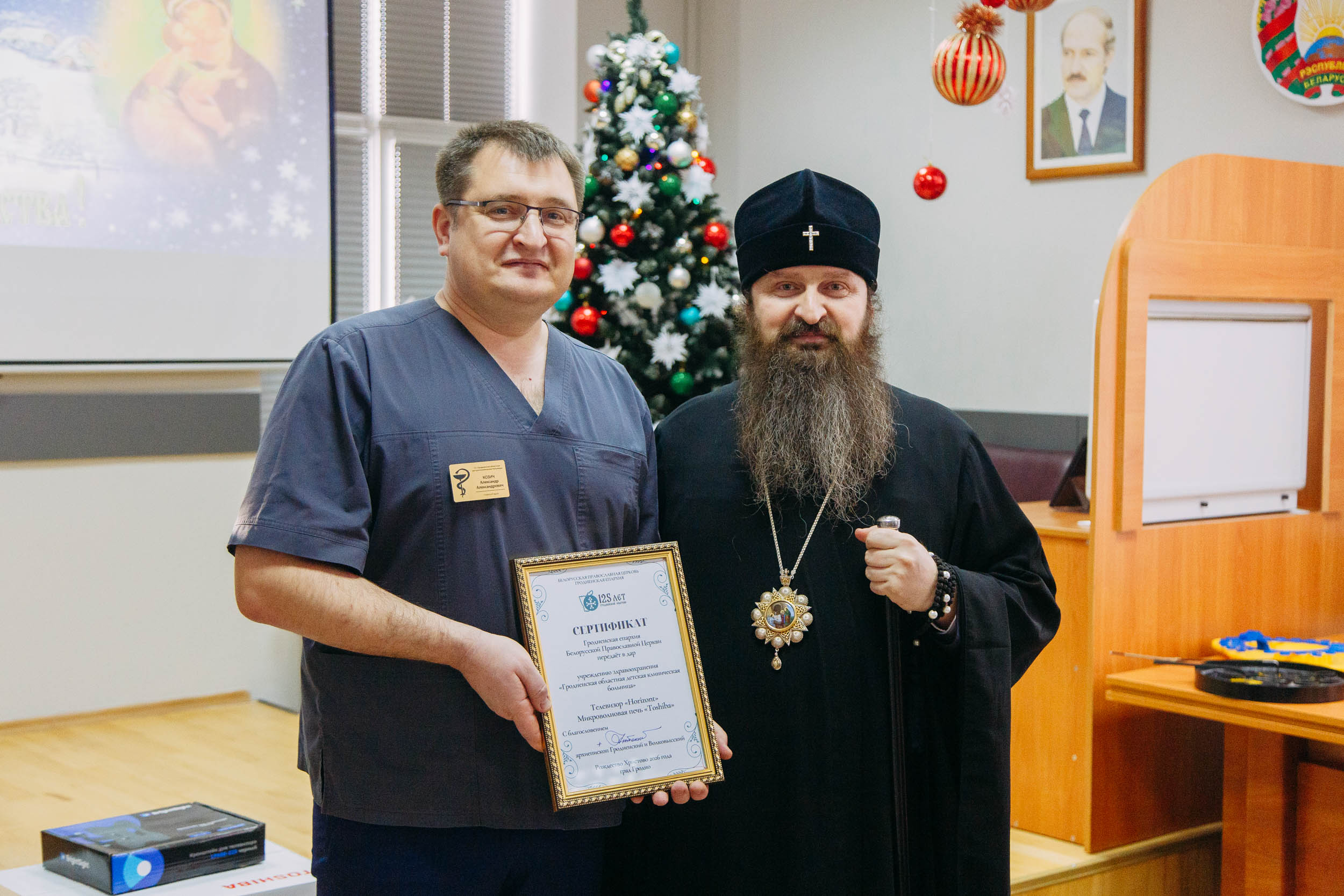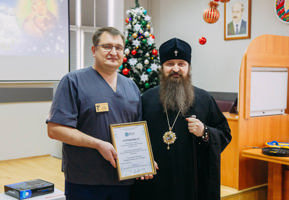 Для развития материально-технической базы больницы Его Высокопреосвященство передал учреждению здравоохранения бытовую технику и современные гаджеты, детям были вручены сладкие рождественские подарки.