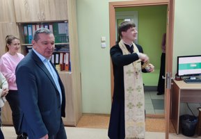 После беседы настоятель прихода храма ппреподобномученика Серафима Жировичского города Гродно протоиерей Иоанн Велисейчик совершил чин освящения здания.