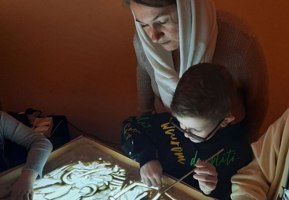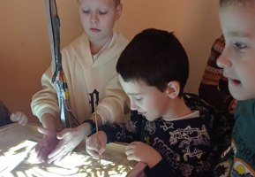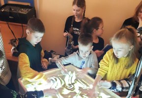 После представления воспитанники воскресной школы узнали секреты мастерства пескографии и попробовали себя в роли художников-аниматоров.