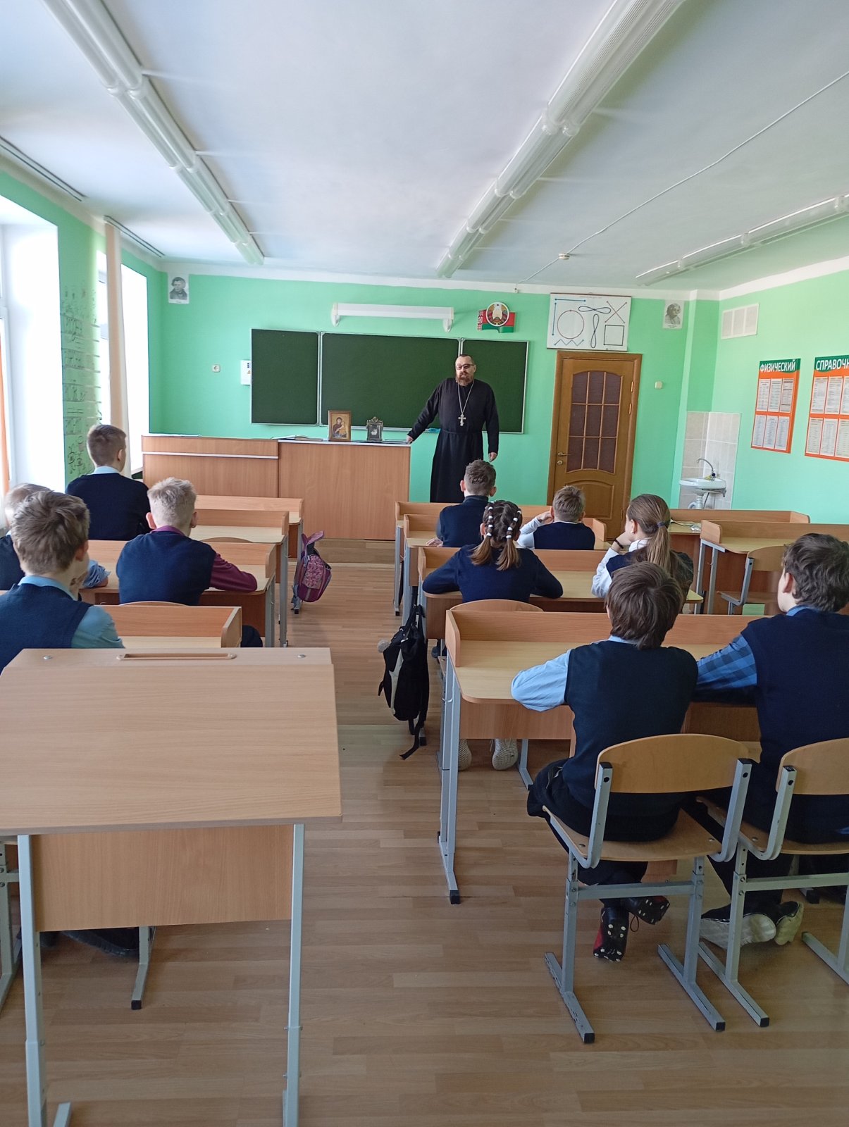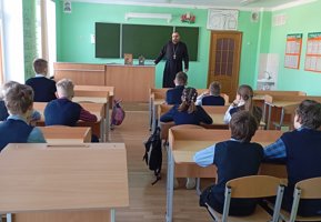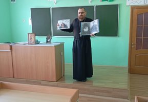 Священнослужитель провел беседу с учащимися 5–7 классов на тему «100-летие упокоения протоиерея Льва Иосифовича Савицкого».