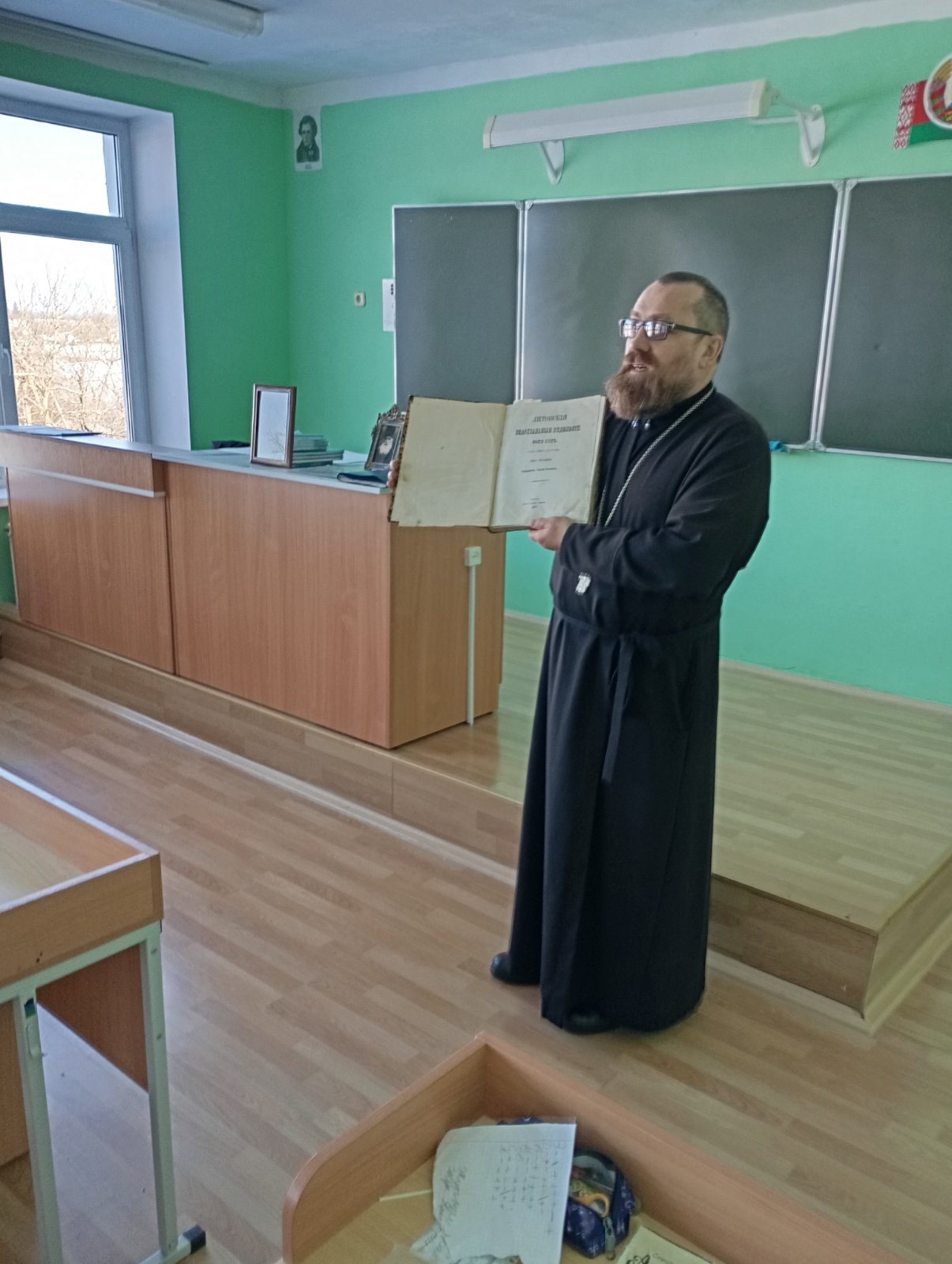 30 января настоятель прихода храма Рождества Пресвятой Богородицы д. Мурованка иерей Олег Засим посетил государственное учреждение образования «Скрибовская средняя школа».