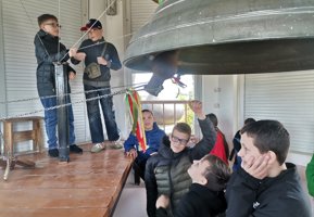 Клирик прихода иерей Димитрий Сидляревич рассказал гостям историю храма и провел экскурсию. Священник познакомил учащихся с главными святынями собора, провел на колокольню, где рассказал о значении колокольного звона, а ребята смогли позвонить в колокола.