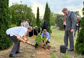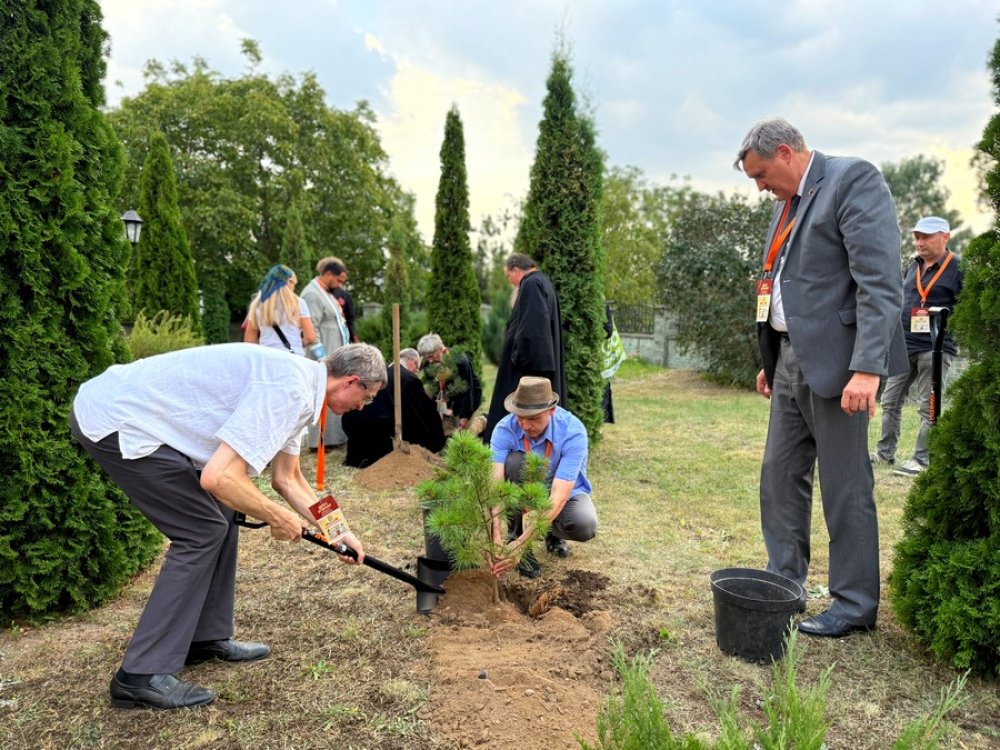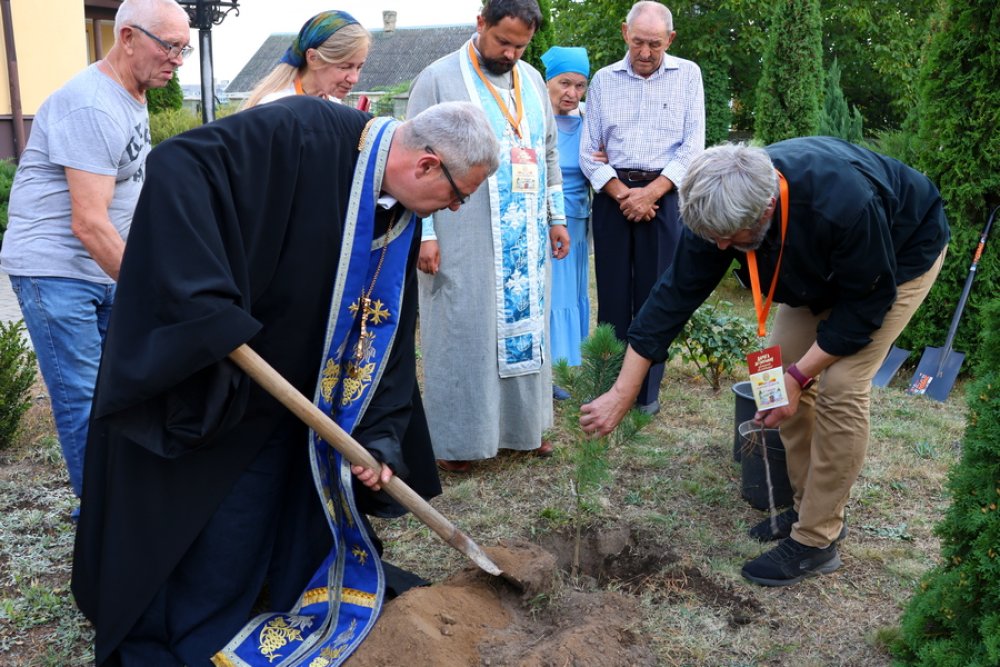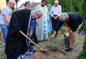 В завершение визита участники акции высадили на территории храма «Сад молитвы», пополнив его кедрами.