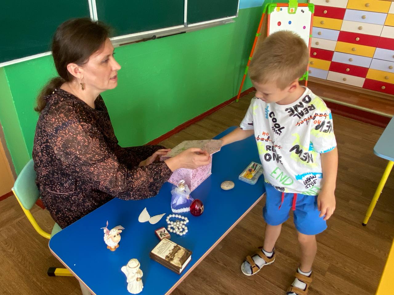 В сентябре состоялось два занятия. Первое было посвящено теме: «В великой Книге о том, Кто есть Бог». Дети познакомились с Библией и рассматривали знаменитую икону «Троица» Андрея Рублева. Целью занятия стало приобщение воспитанников к библейскому наследию и православным традициям, развитие художественного вкуса, коммуникативных навыков и духовных ценностей.