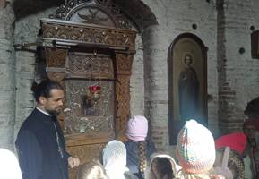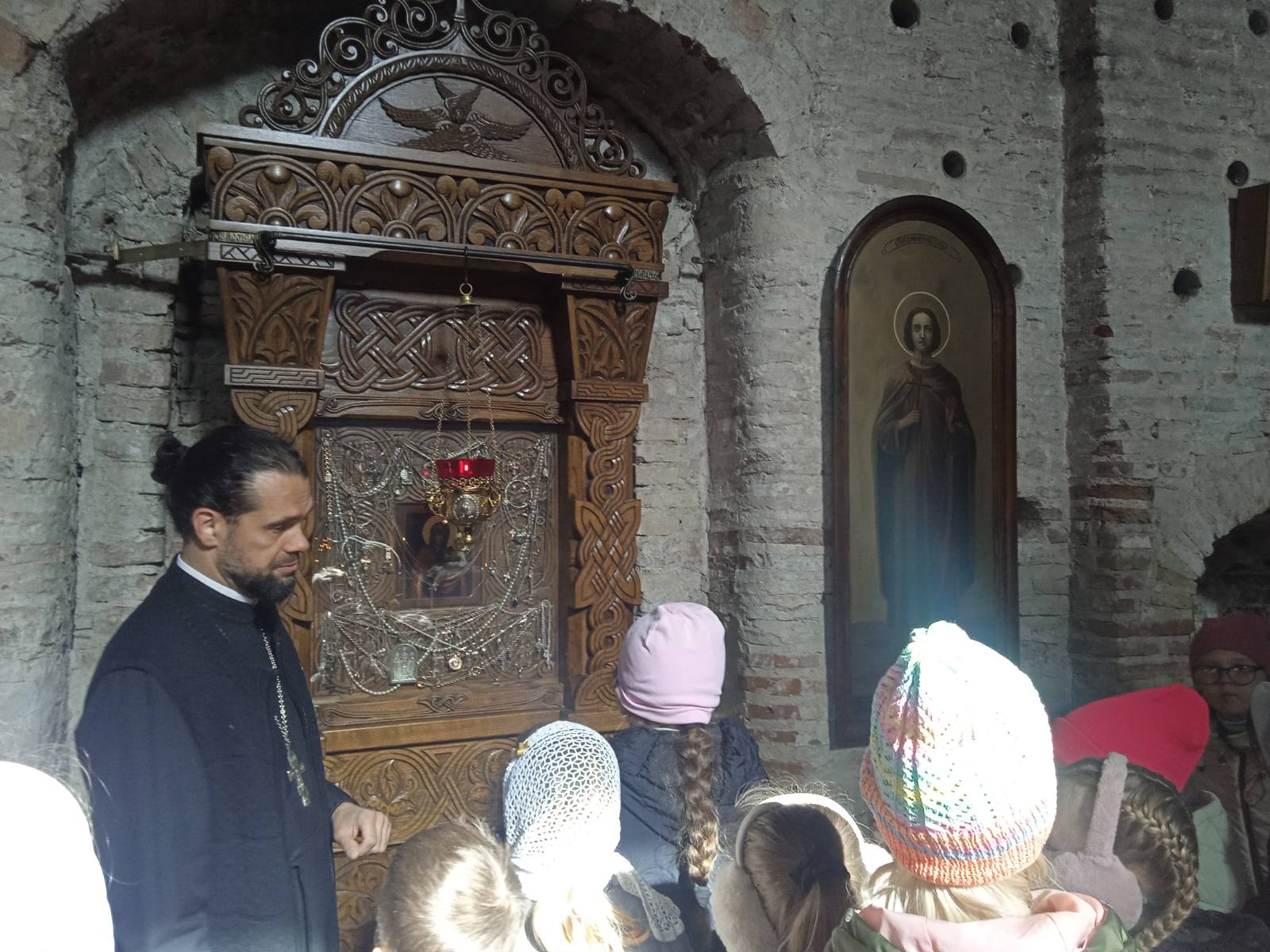 Экскурсию по древней святыне для учащихся провел иерей Димитрий Колесников, руководитель миссионерского отдела Гродненской епархии. Священнослужитель рассказал школьникам об истории Коложской церкви, ее святынях и значении христианской веры в жизни человека.
