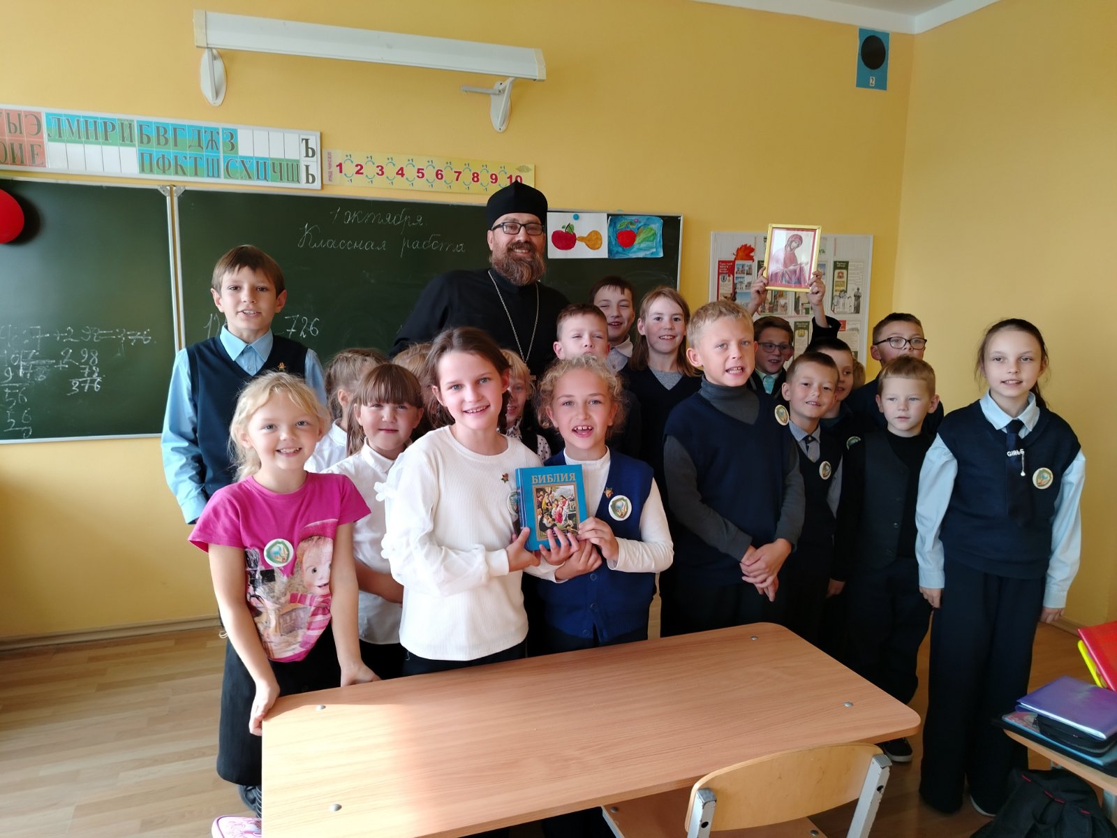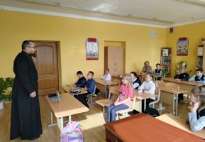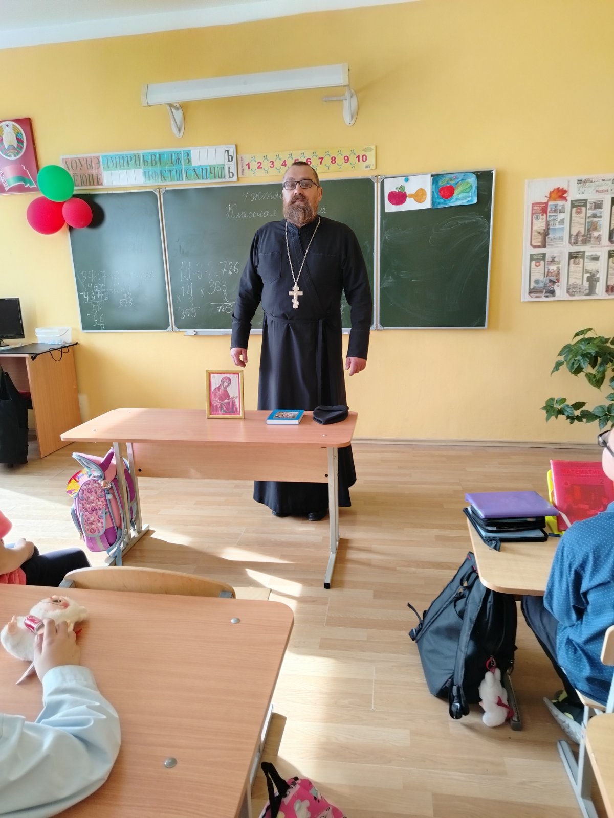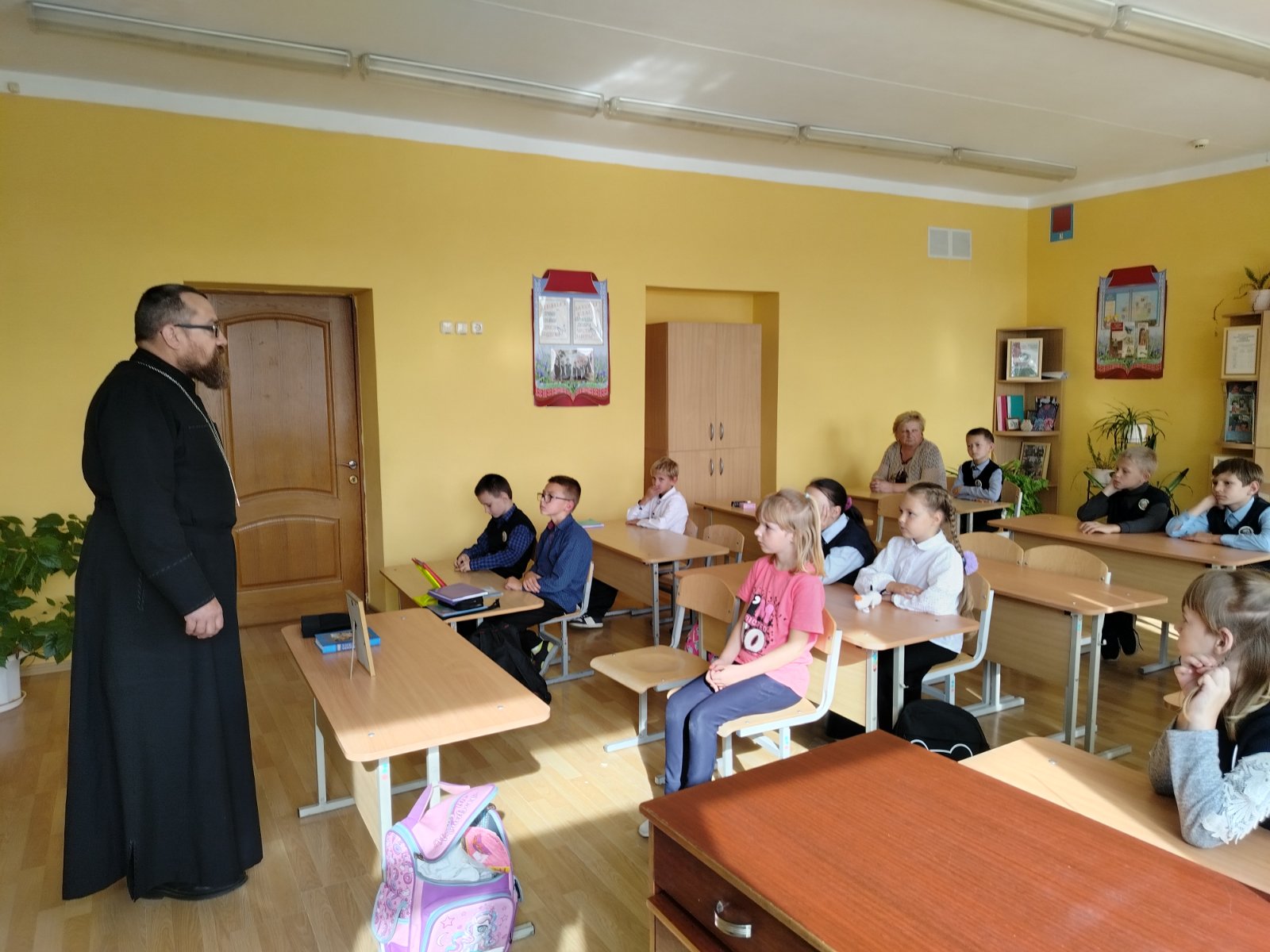 1 октября настоятель прихода храма Рождества Пресвятой Богородицы деревне Мурованка иерей Олег Засим посетил ГУО «Скрибовская средняя школа» и провел беседу с учащимися 1–4 классов на тему «Мученицы Вера, Надежда и Любовь и матерь их София».
