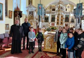 4 октября настоятель храма святого великомученика Димитрия Солунского агрогородка Малая Берестовица иерей Николай Гмир встретился в храме с учащимися 4-го класса местной школы.