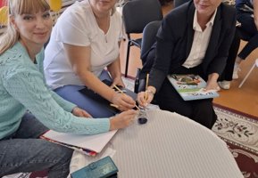 2 октября педагоги младшего отделения «Зёрнышки» воскресной школы кафедрального собора Покрова Пресвятой Богородицы города Гродно Елена Макаревич и Светлана Резник провели семинар-практикум на тему «Святость» с педагогическим коллективом государственного учреждения образования «Детский сад №35 г. Гродно».