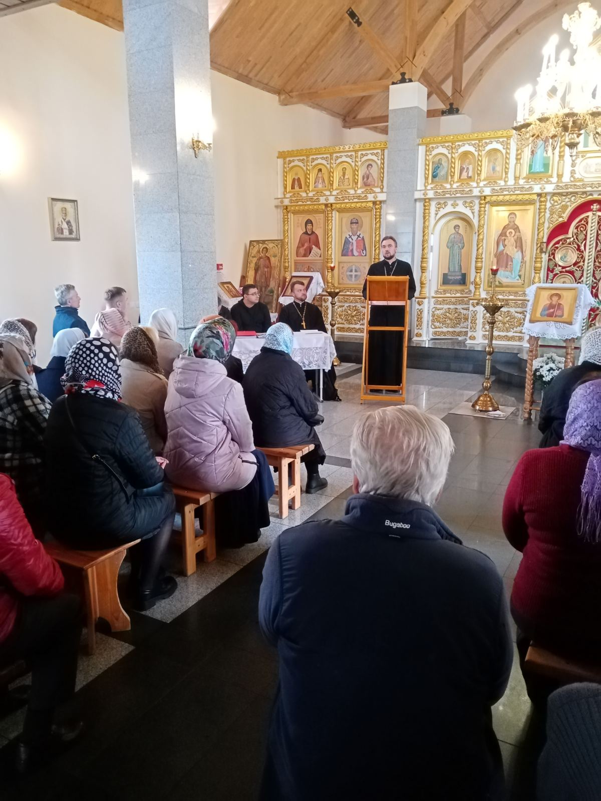 Перед собравшимися выступил настоятель храма протоиерей Валерий Боричевский, который подвел итоги приходской и хозяйственной деятельности за минувший год и обозначил ключевые задачи на будущее. Также с отчетом о финансовой жизни прихода перед собравшимися выступил казначей Д. Кравчук.