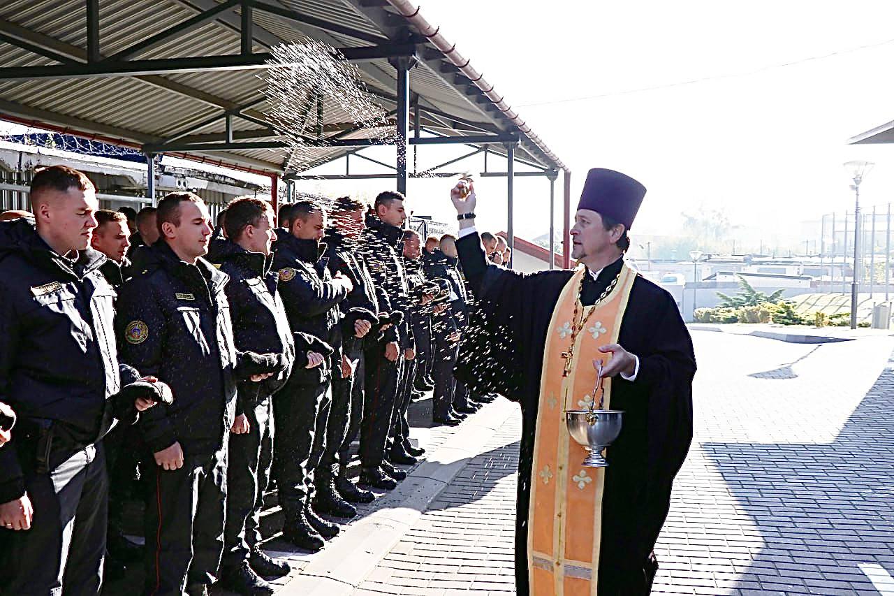 Протоиерей Евгений Павельчук принял участие в строевом смотре октябрьского подразделения Департамента охраны