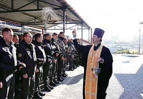 Священник отметил важность службы охраны в спокойствии и сохранении жизни и имущества людей. В связи с этим отец Евгений отметил важность морального облика сотрудников охраны и добросовестного исполнения ими своих обязанностей. Помолившись и испросив Божие благословение руководству и сотрудникам областного Департамента охраны и их подразделениям, священник окропил их святой водой.