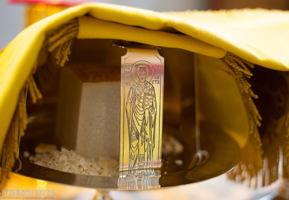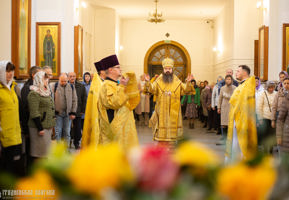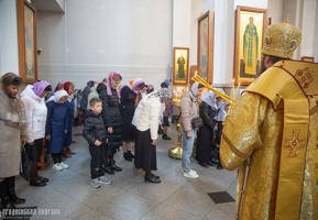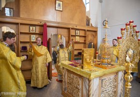 Его Высокопреосвященству сослужили: иерей Евгений Коваль, ключарь Архиерейского подворья; иерей Александр Дьяченко, клирик подворья.
