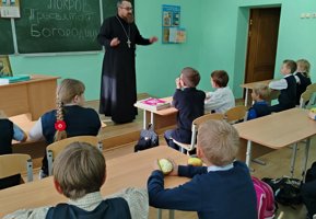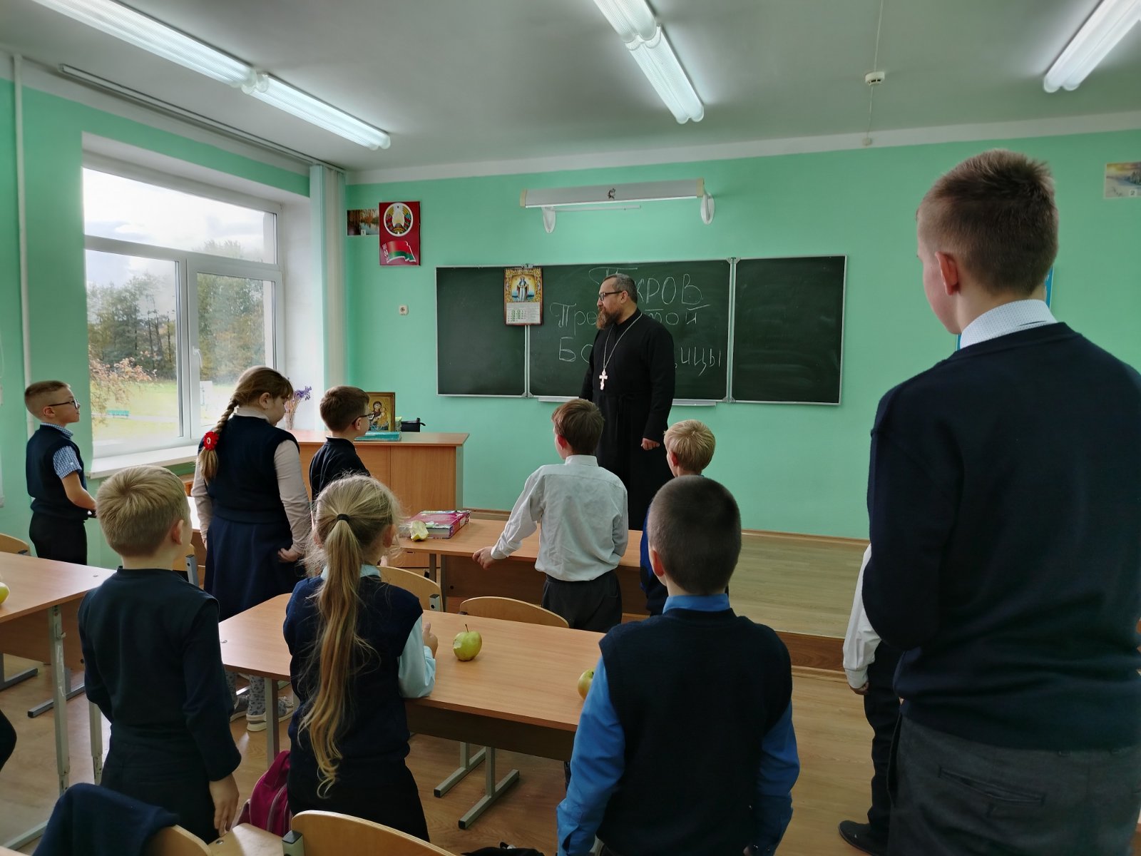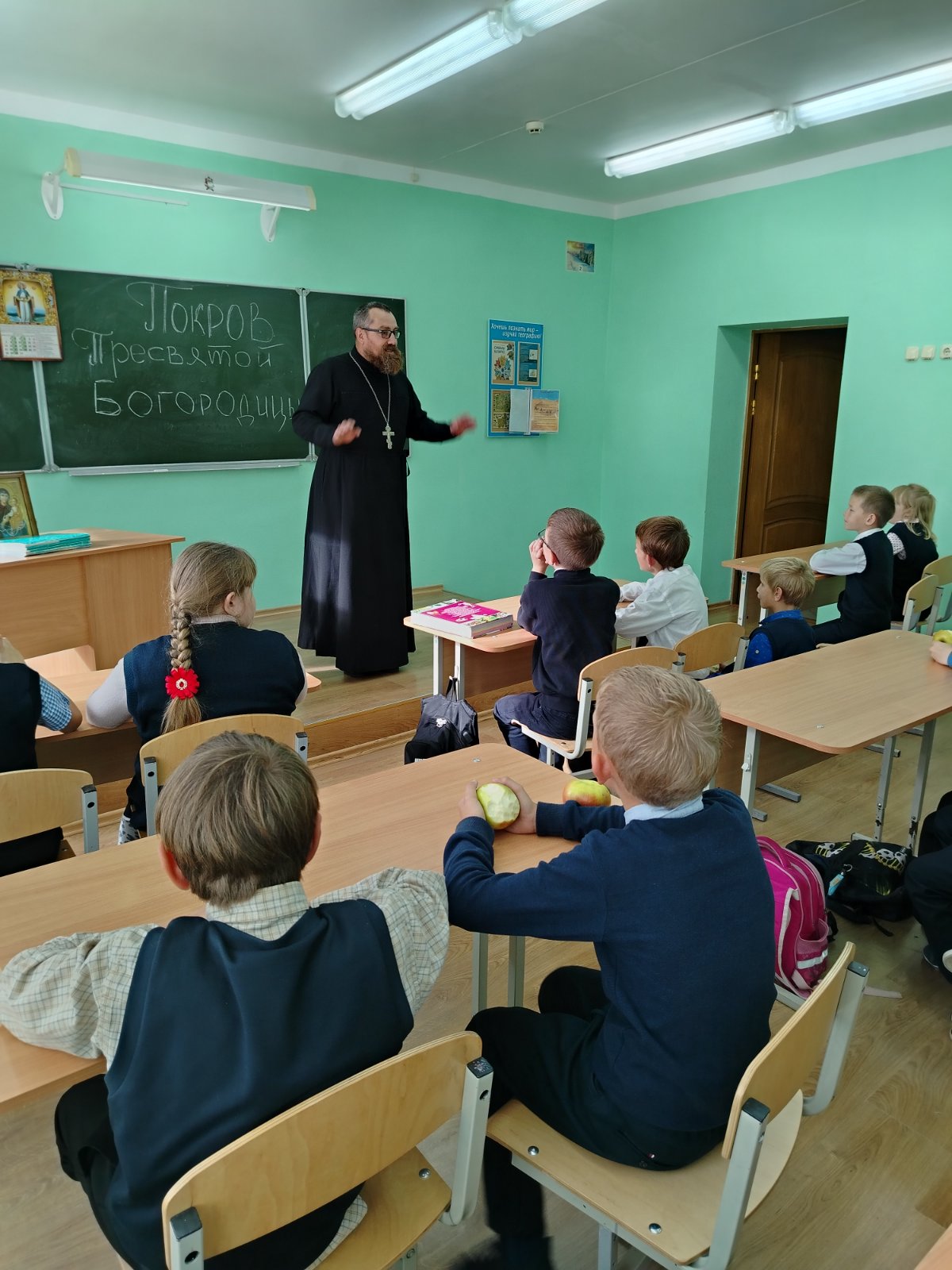 В преддверии праздника Покрова Пресвятой Владычицы нашей Богородицы и Приснодевы Марии священник рассказал школьникам о чудесном событии, которое стало исторической основой праздника в честь Божией Матери.