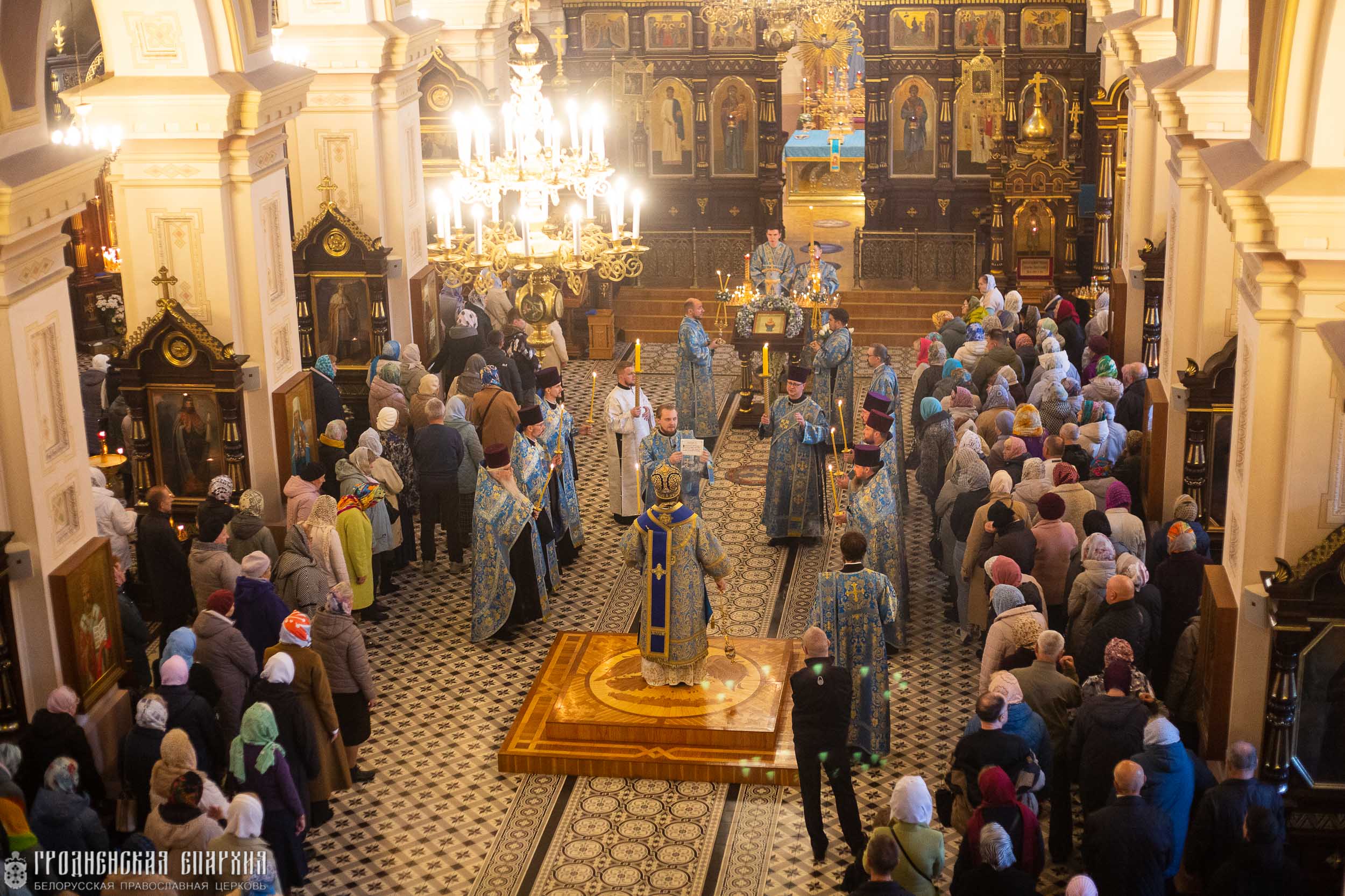 Его Высокопреосвященству сослужили: протоиерей Григорий Беляцкий, настоятель кафедрального собора Покрова Пресвятой Богородицы; протоиерей Андрей Бондаренко духовник Гродненской епархии; иерей Александр Гук, руководитель отдела по церковной благотворительности и социальному служению; клирики кафедрального собора.