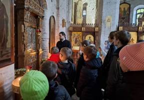 Во время встречи отец Димитрий рассказал детям об истории древнейшего храма Гродненщины, освященного в честь святых страстотерпцев Бориса и Глеба, об особенностях его архитектуры и святынях. Особый интерес вызвал рассказ об уникальных кувшинах-голосниках, вмурованных в стены храма для усиления звука, и о памятниках веры, сохранившихся на протяжении веков.