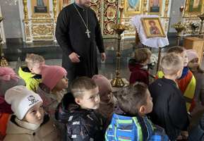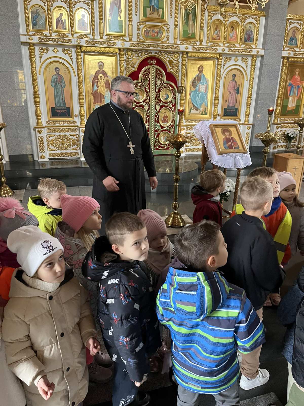 В ходе встречи иерей Георгий рассказал об устройстве храма, значении его святынь и икон, а также правилах поведения в церкви.