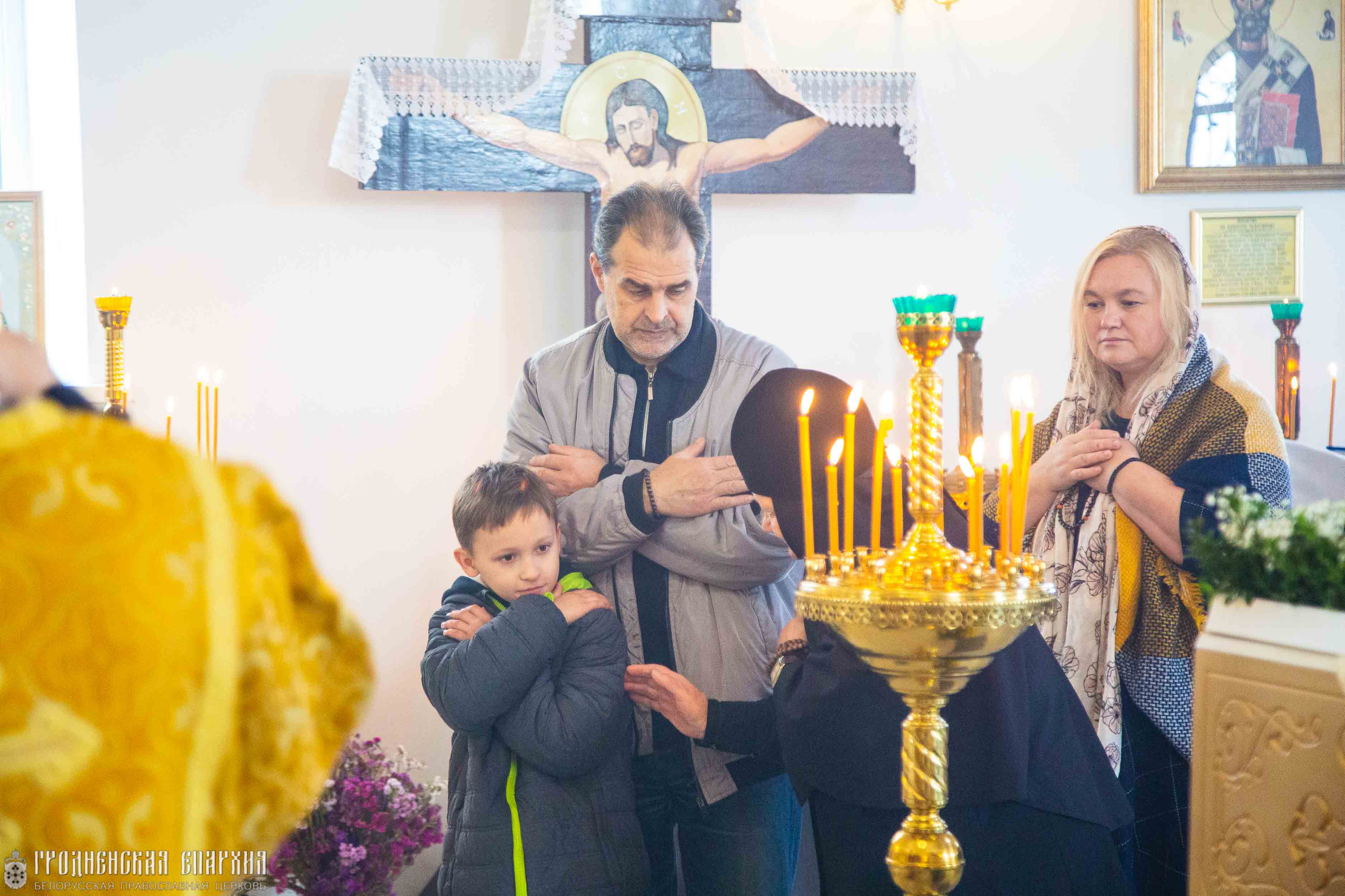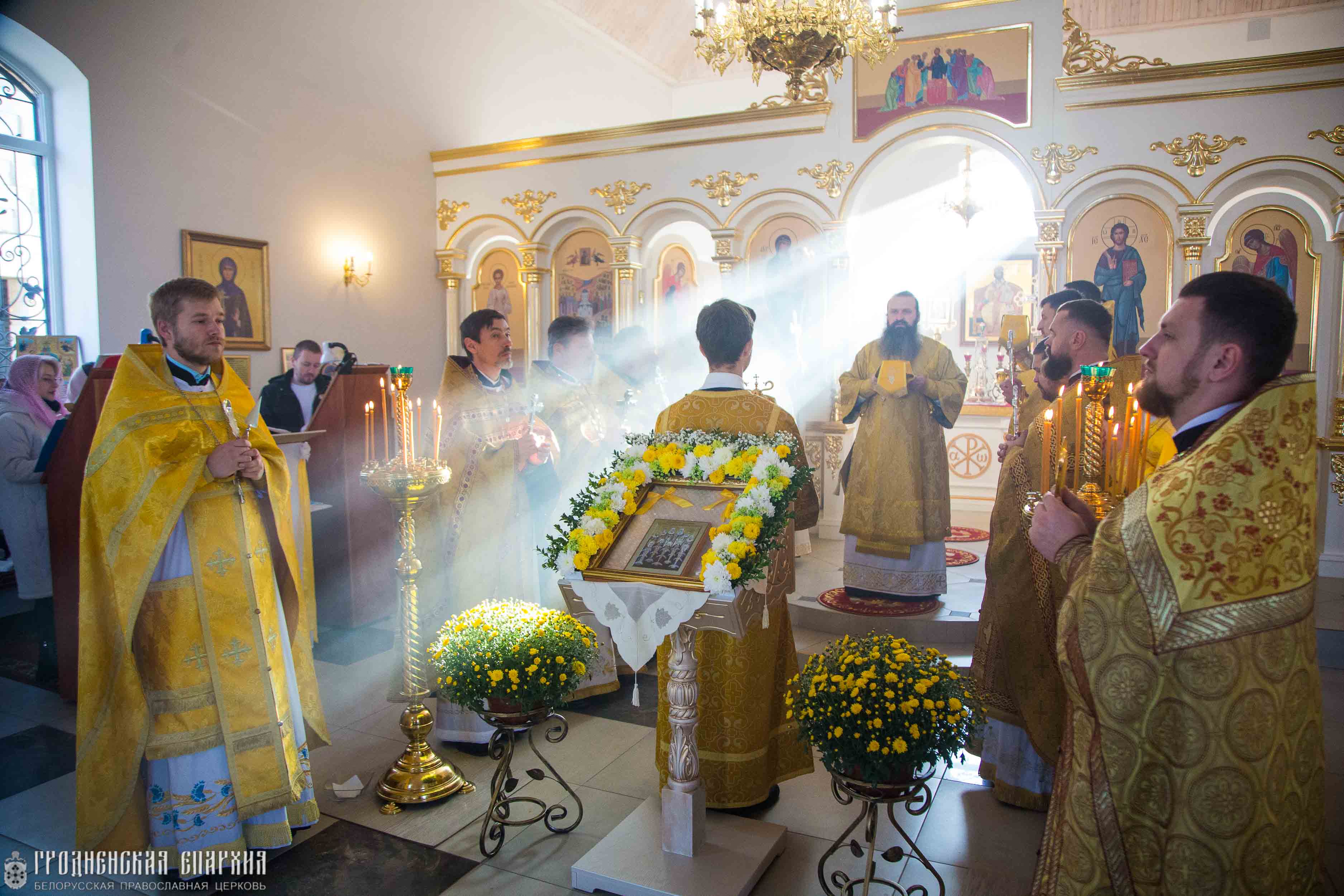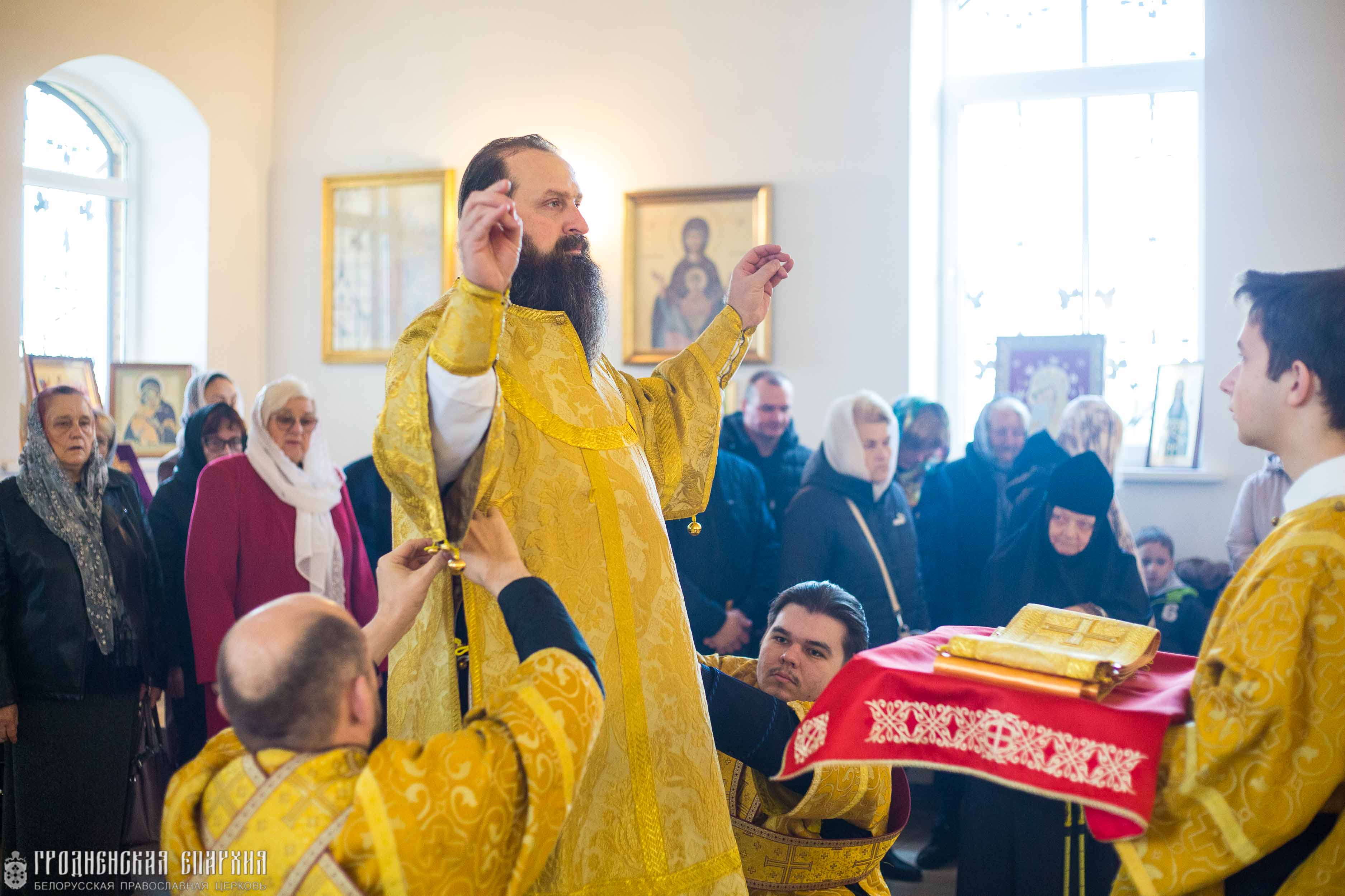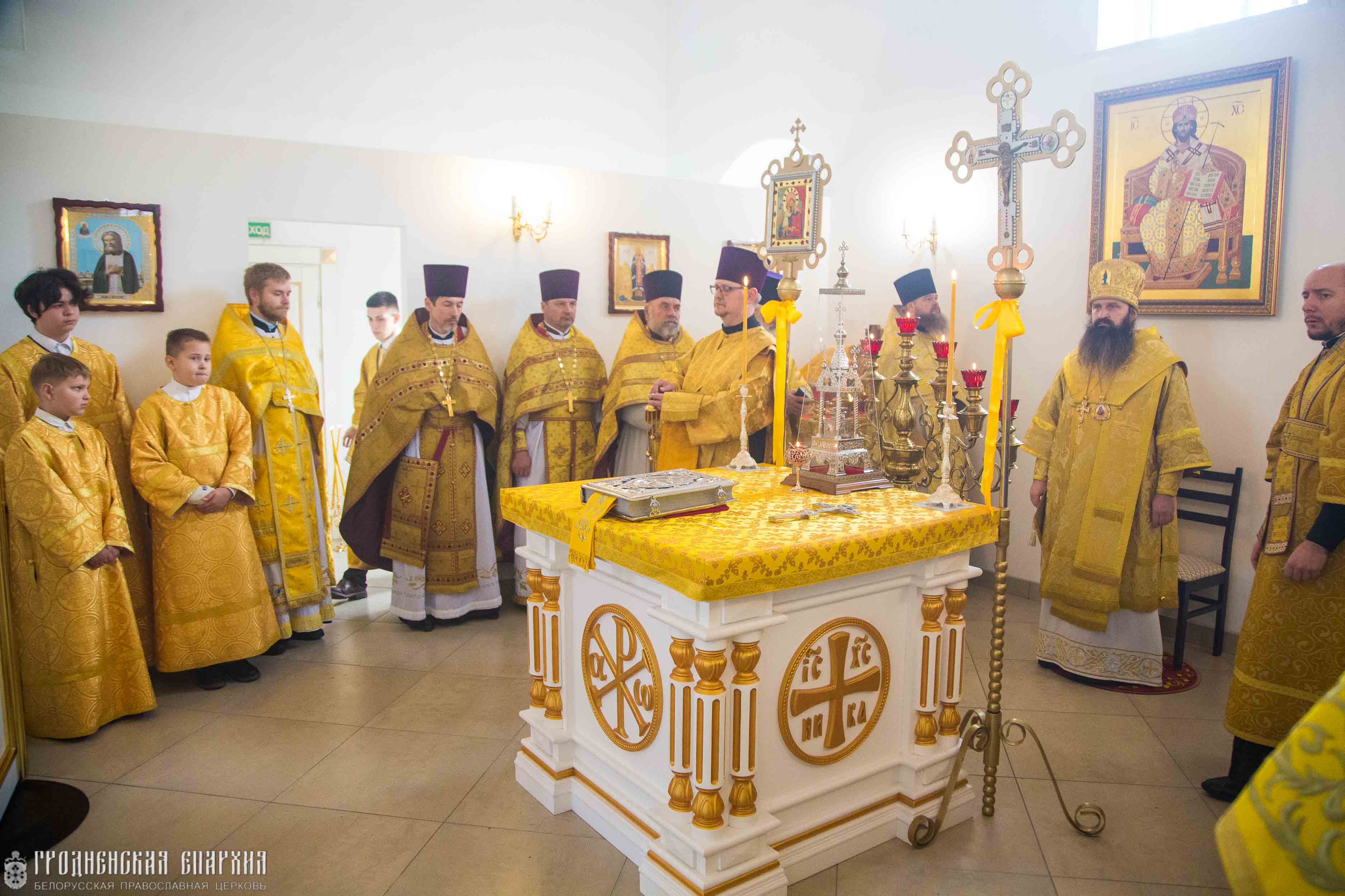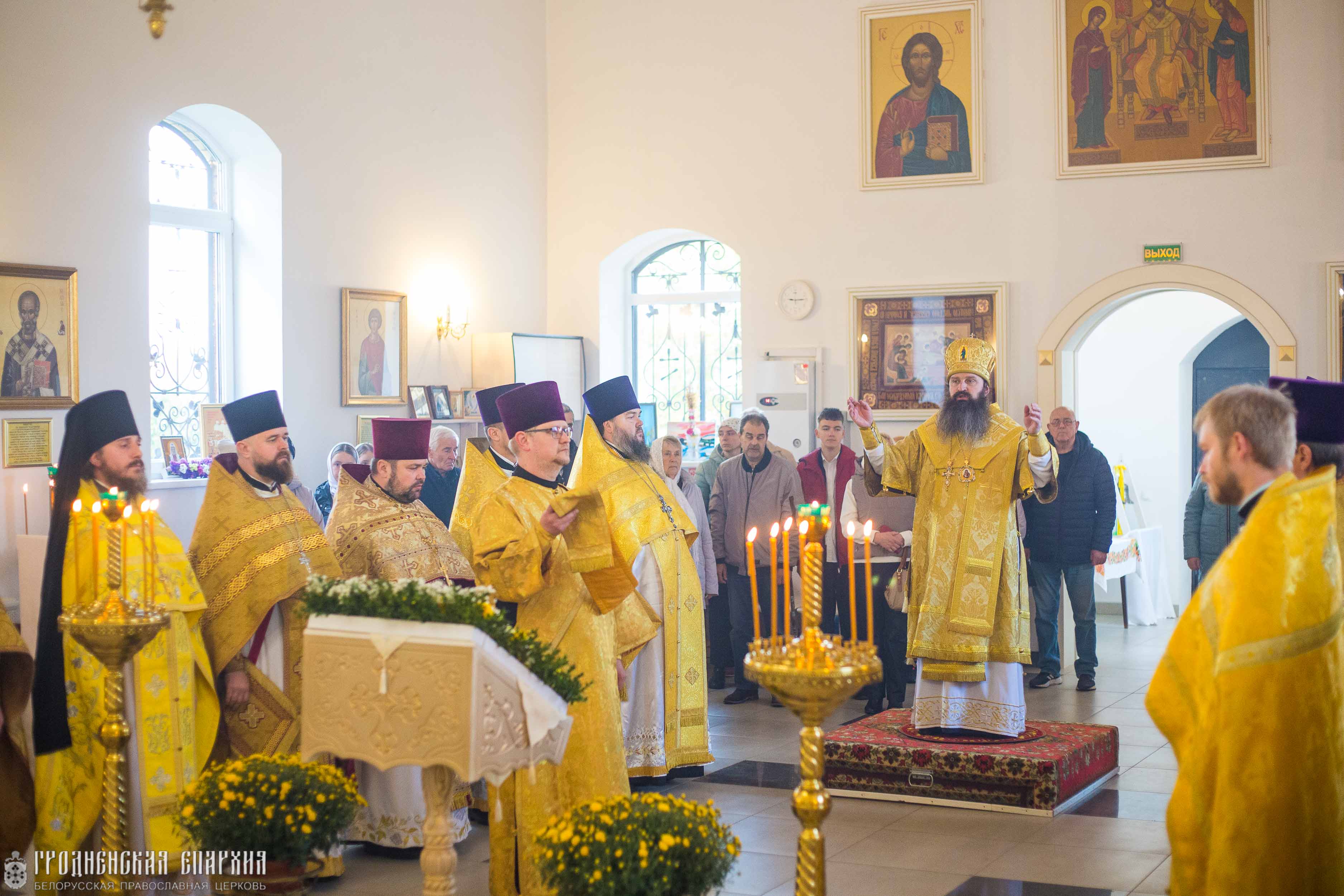 Его Высокопреосвященству сослужили: протоиерей Николай Лабынько, Секретарь Гродненской епархии; протоиерей Кирилл Близнюк, благочинный Скидельского церковного округа; протоиерей Григорий Беляцкий, настоятель кафедрального собора Покрова Пресвятой Богородицы г. Гродно; иеромонах Николай (Есоян), настоятель приход храма Преображения Господня; духовенство Скидельского благочиния.