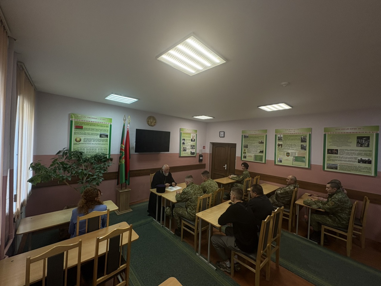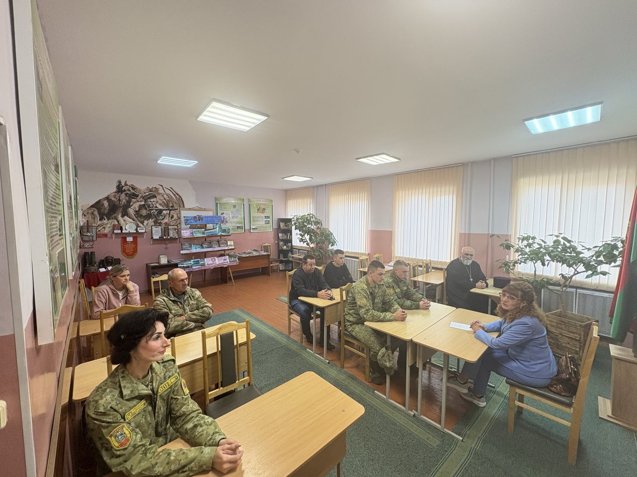 16 октября, в рамках единого дня информирования населения, состоялась встреча военнослужащих пограничной заставы № 10 «Пограничный» с настоятелем храма преподобной Евфросинии Полоцкой г. Берестовицы протоиереем Сергием Шелестом.