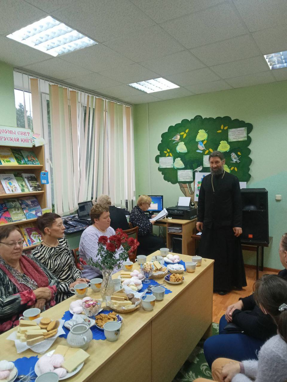 18 октября настоятель храма Преображения Господня г. п. Острино Щучинского района протоиерей Алексий Талмазан принял участие в праздничном мероприятии, посвященном Дню матери, проходившем в Остринской поселковой библиотеке.