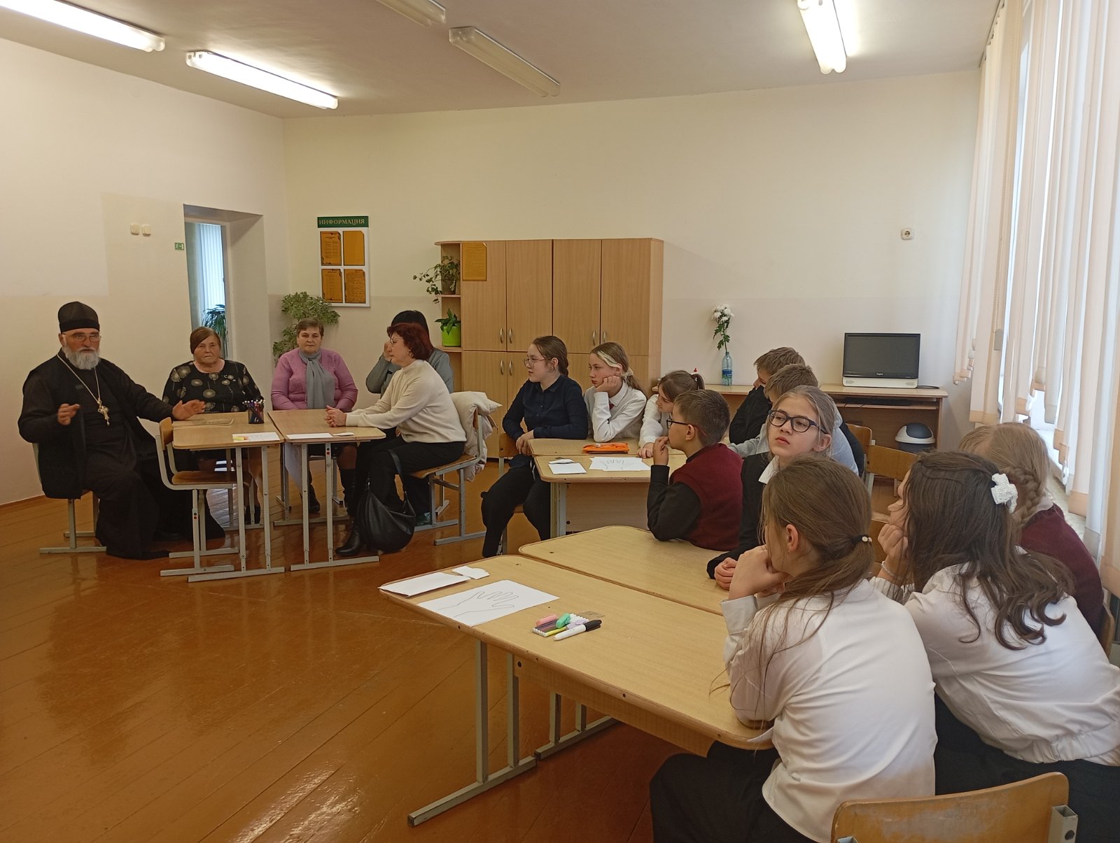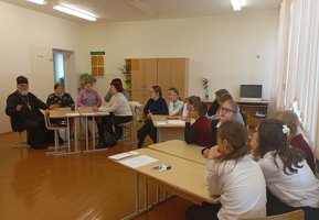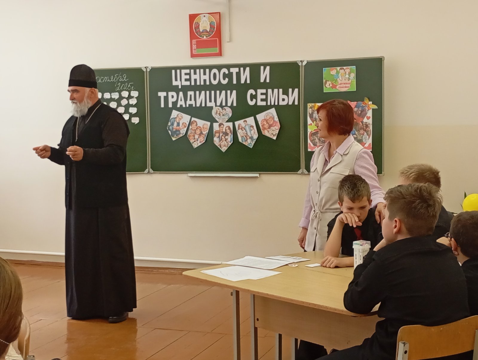 17 октября, в рамках мероприятий, посвященных Неделе родительской любви, в средней школе агрогородка Пограничный состоялась встреча учащихся 6-го класса с настоятелем храма преподобной Евфросинии Полоцкой протоиереем Сергием Шелестом.
