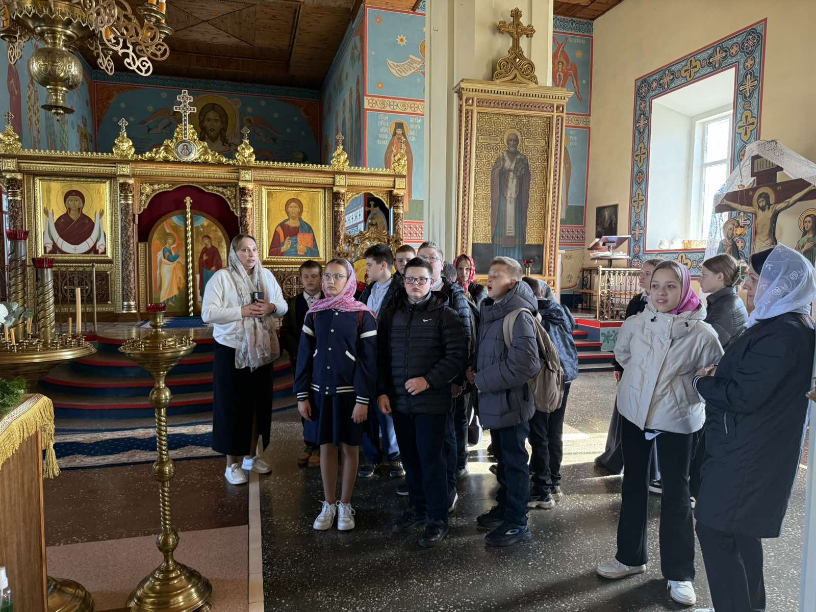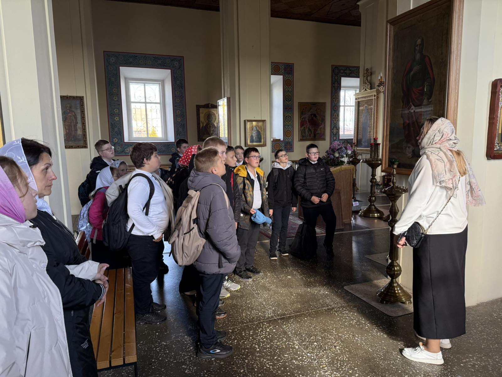 Во время посещения храма школьники познакомились с его историей, узнали о священнослужителях и певчих, служивших в разные годы, а также о богослужениях, совершаемых в храме. Особое внимание учащихся привлек рассказ об устройстве храма и новом иконостасе, недавно установленном в нем.