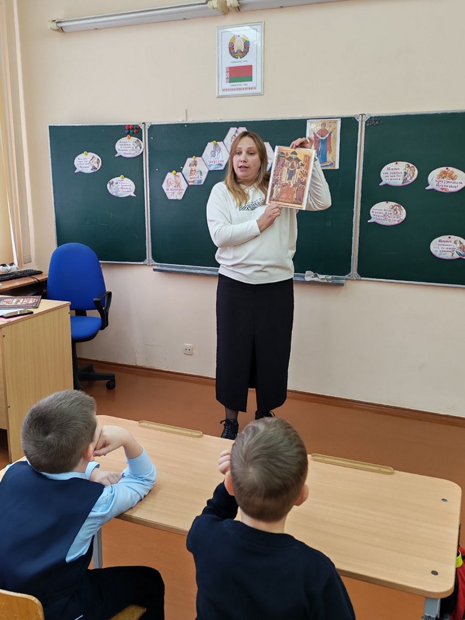 Особый интерес у учащихся вызвала икона — дети внимательно рассматривали образ и задавали вопросы, стремясь глубже понять смысл праздника.