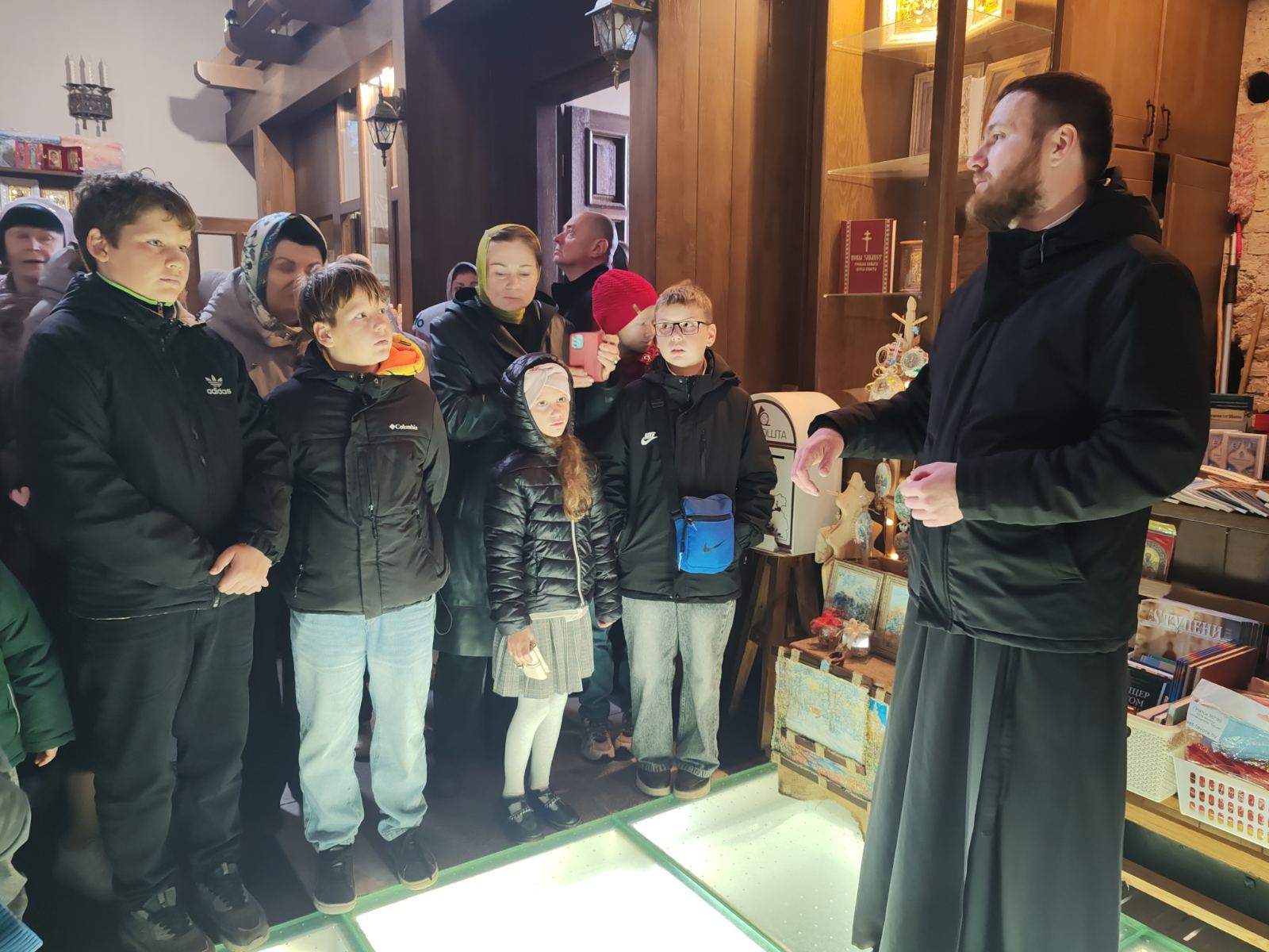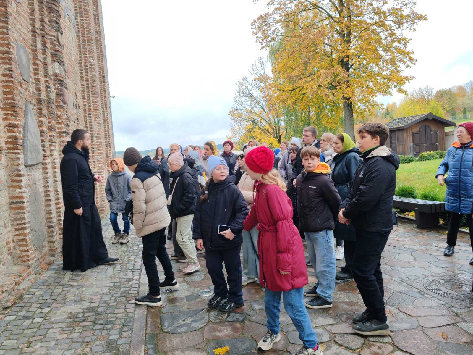 Паломники — дети и взрослые — с интересом слушали рассказ, задавали вопросы и делились впечатлениями. Особый интерес вызвала история Коложского образа Божией Матери, перед которым участники смогли вознести молитвы.
