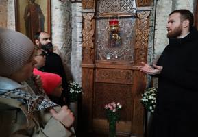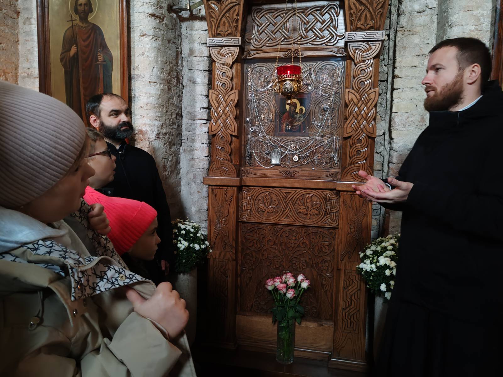 Диакон Борис Бородинчик провел экскурсию для паломников из Белоозерска в Коложском храме