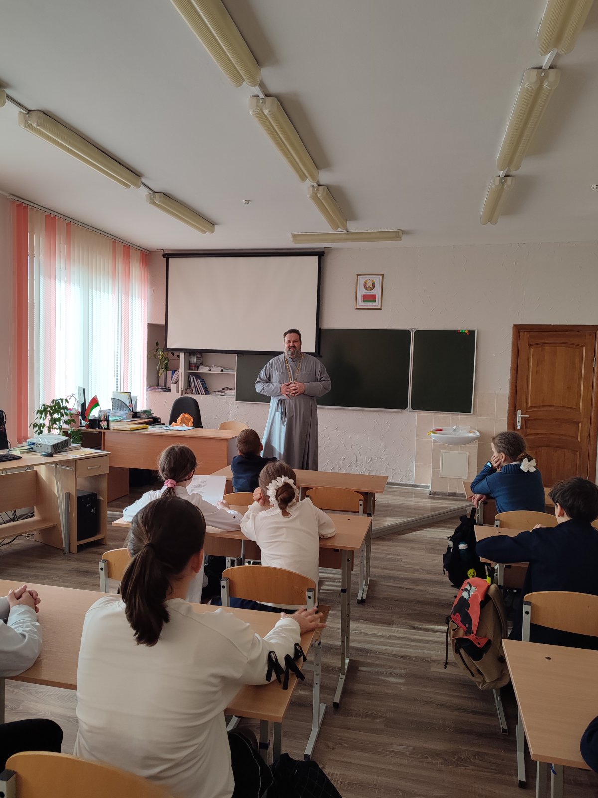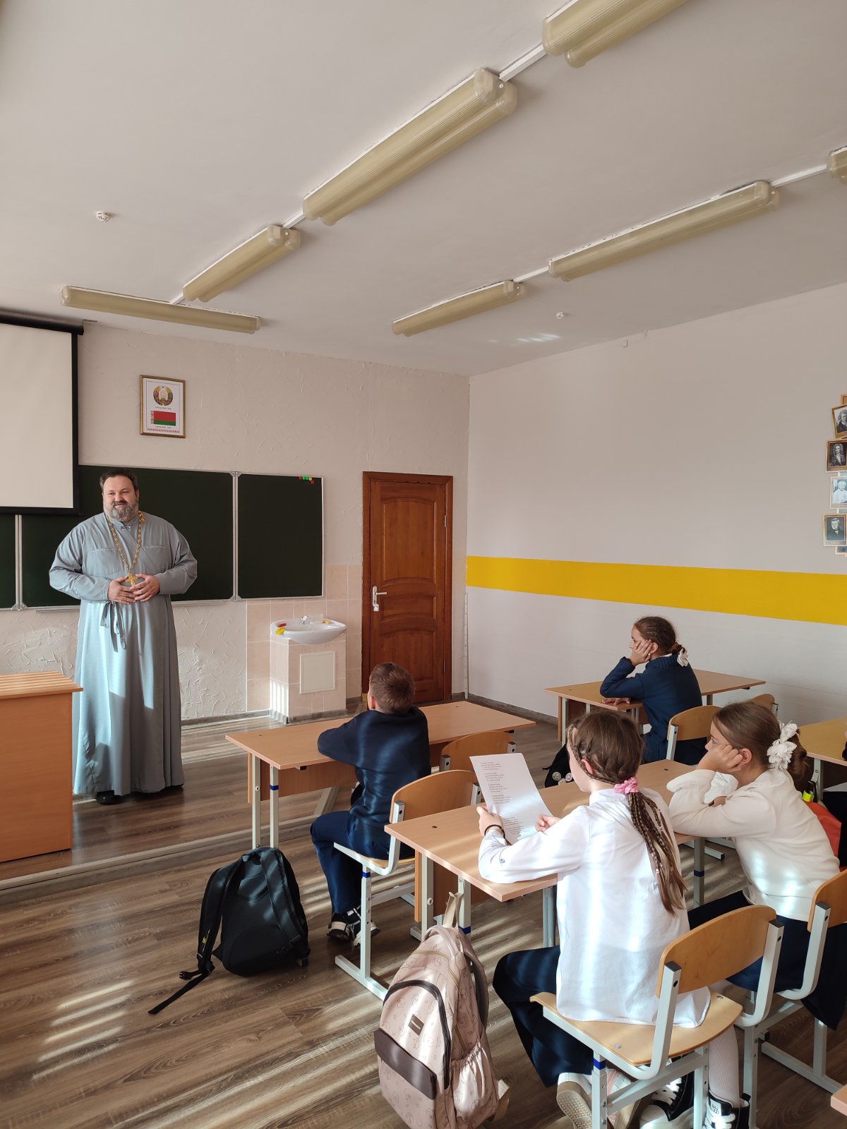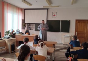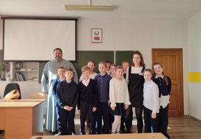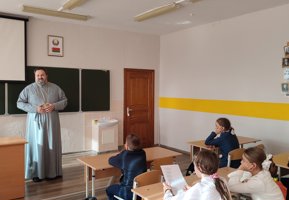 16 октября 2025 года, в Неделю семьи, настоятель храма преподобного Серафима Саровского агрогородка Обухово иерей Игорь Волков посетил среднюю школу агрогородка Обухово, где провел беседу с учащимися 5 «Б» класса.