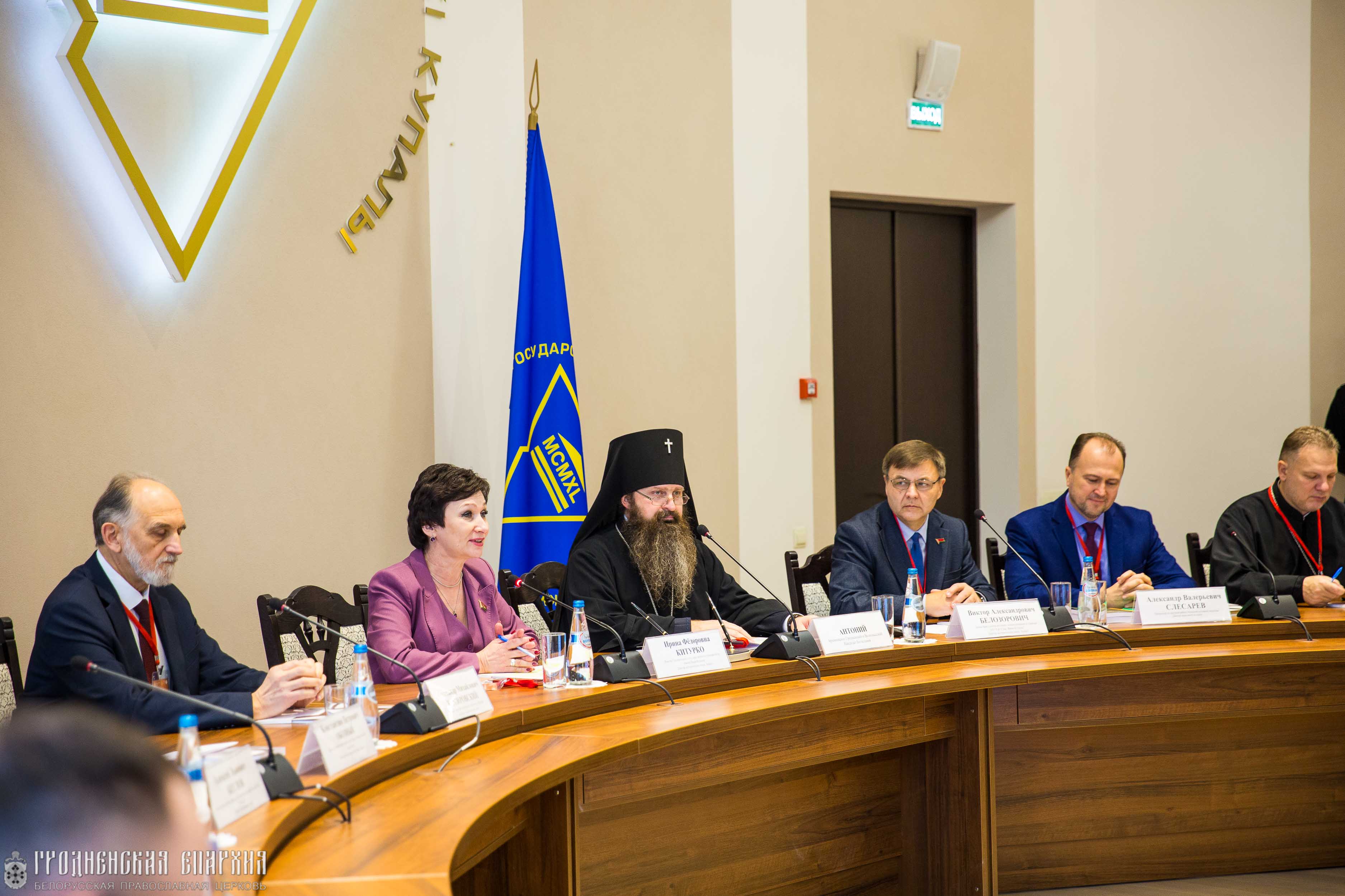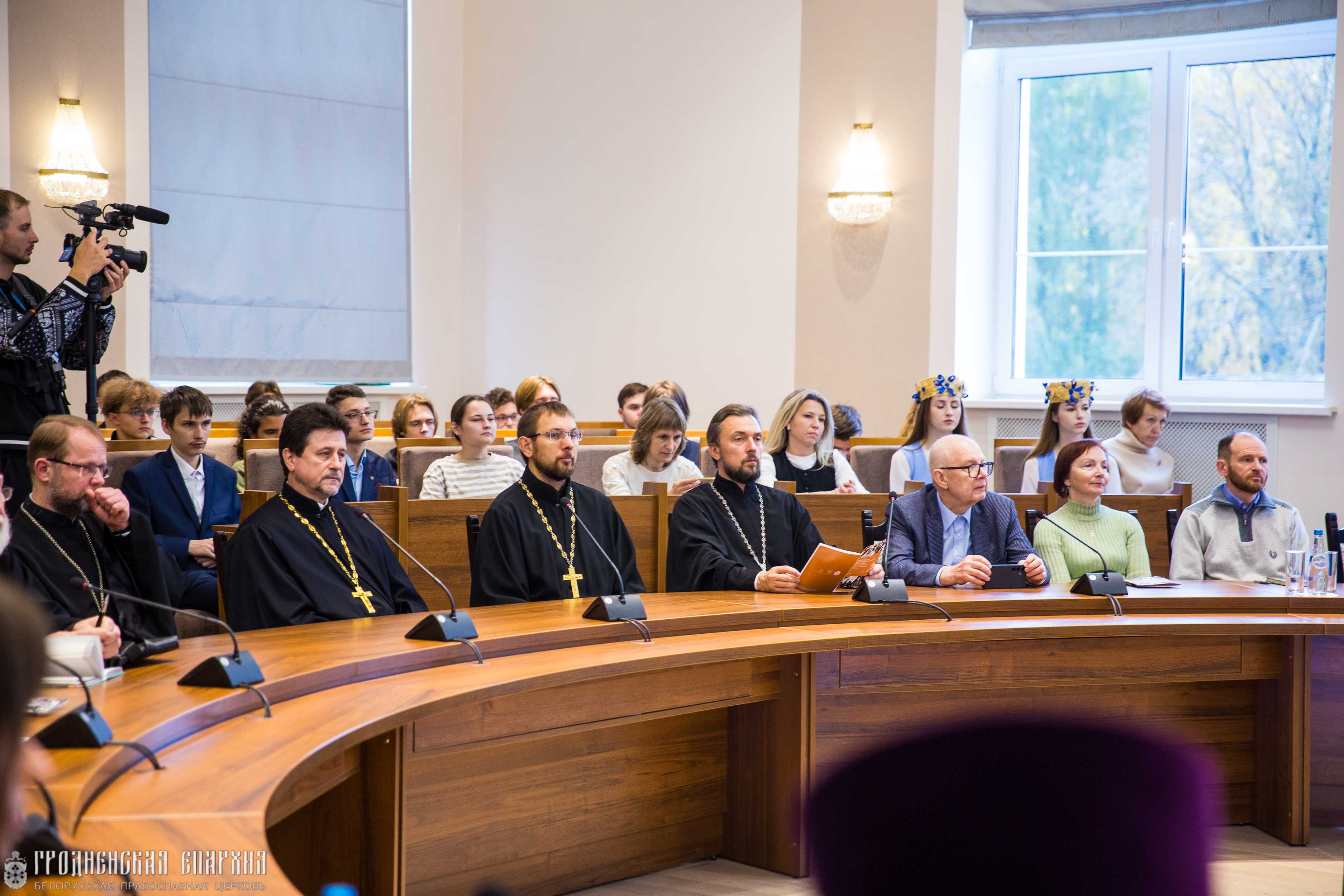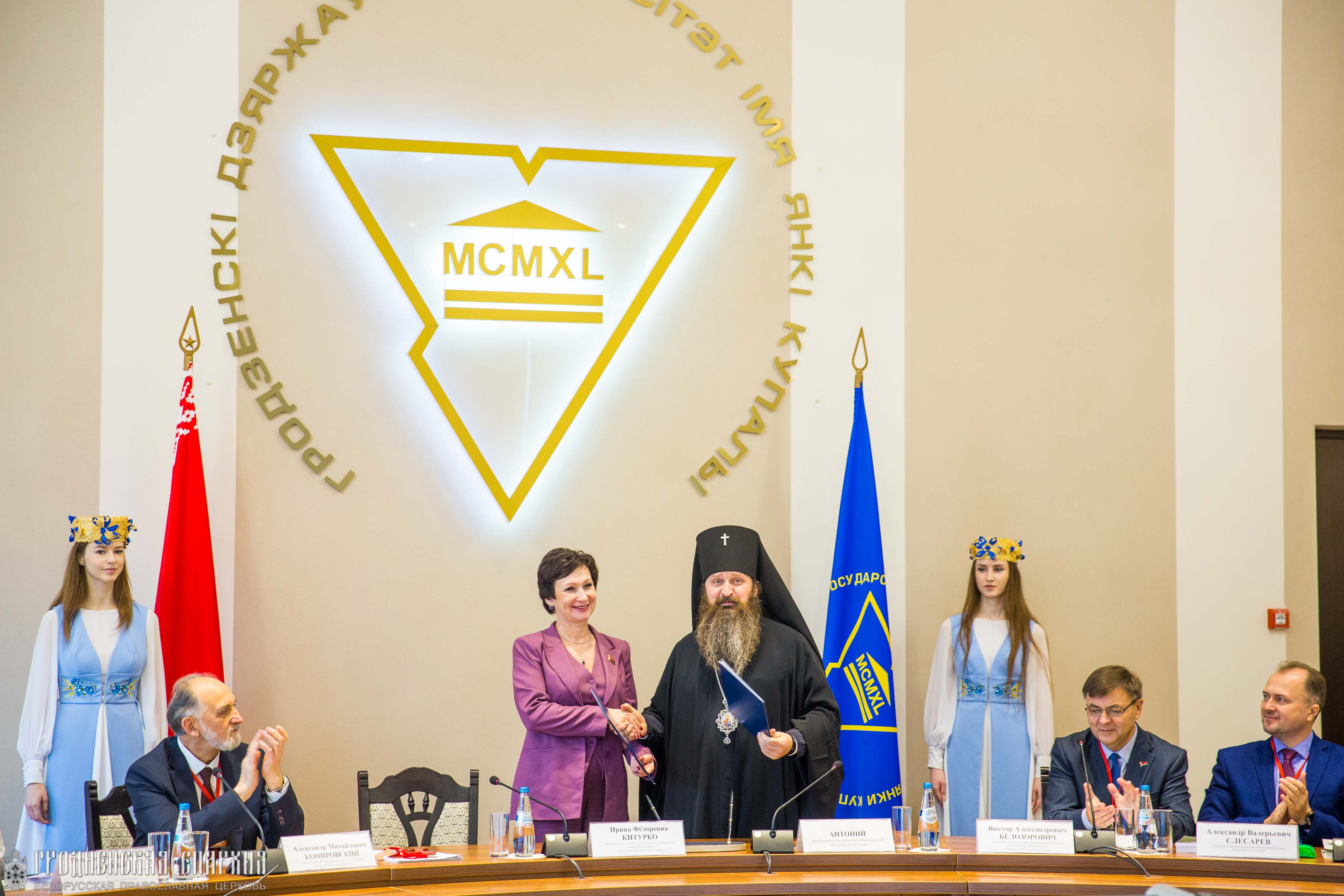 В своем слове владыка Антоний подчеркнул глубокую, давнюю и содержательную историю разностороннего Гродненской епархии и Купаловского вуза. Архипастырь отметил символическую близость главного корпуса ГрГУ имени Янки Купалы и кафедрального собора Покрова Пресвятой Богородицы г. Гродно, расположенных фактически друг напротив друга на одной улице, а также то, что главный корпус университета находится в историческом здании гродненской женской Мариинской гимназии, в котором в 1984 - 1914 гг. действовала домовая церковь в честь святых жен-мироносиц.